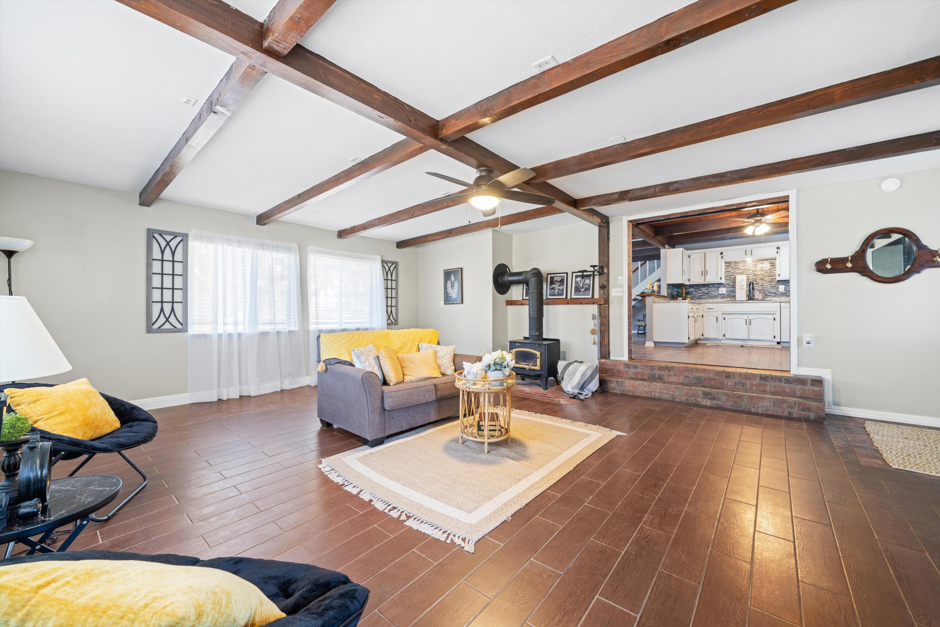 Welcome to your dream retreat in Bear Valley Springs, Tehachapi! This stunning custom cabin-style home spans 2,208 square feet and is nestled on a sprawling 1.05 acres of picturesque land, with the potential to be a horse property.Step inside to discover a warm and inviting atmosphere, featuring natural wood beams that enhance the character of the home. The semi-open kitchen, complete with laundry facilities, flows seamlessly into a charming dining area, perfect for family gatherings and entertaining guests. The spacious den is a cozy haven, highlighted by a wood-burning fireplace, creating an ideal space for relaxation on chilly evenings.This home boasts four comfortable bedrooms, with two located on the main floor alongside a full bathroom, making it convenient for guests or family members. Upstairs, you'll find two additional bedrooms and another full bathroom, offering privacy and space for everyone.One of the standout features of this property is the deck space and rooftop patio, where you can soak in breathtaking views of the surrounding mountains and majestic oak trees - a perfect spot for morning coffee or evening sunsets. The expansive outdoor space provides endless opportunities for gardening, recreation, or even adding your own horse facilities.Don't miss the chance to own this unique home in a tranquil setting, combining the charm of cabin living with modern comforts and the beauty of nature right at your doorstep.