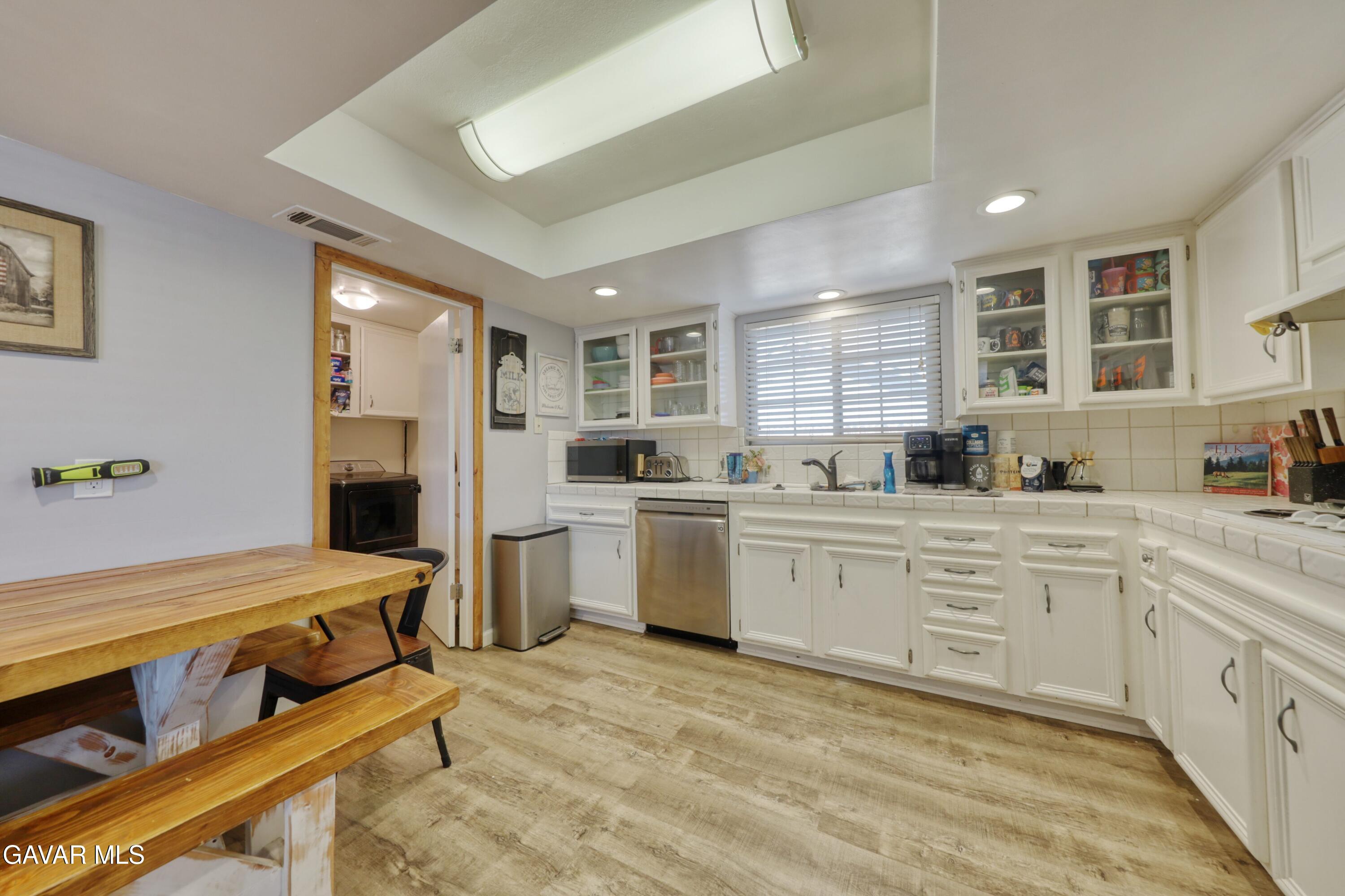 Beautiful Things Come in Small Packages. This cozy 2 bedroom home shows large with extended entry way opening to a comfortable living space accompanied with a real rock, real wood burning fireplace and surprisingly large open kitchen offering long countertop space, a dishwasher, double compartment sink, natural gas cooktop and loads of cabinet space. As you venture down the hall way you will notice a custom hand made real wood top cabinet and a Jack and Jill Guest Bathroom opening to an indoor laundry room adjoining to the kitchen and also opening to the back yard space. Very convenient for your backyard guest ! Both bedrooms are a comfortable size with the master bedroom being the larger with two closets, roomy vanity area and separate shower room.This little gem also offers a newer roof, covered patio area, recently upgraded central heat and a/c unit, RV access and backyard privacy fence.Un believable use of space here sitting on a quiet Golden Hills cul de sac.Come see what affordability offers.
