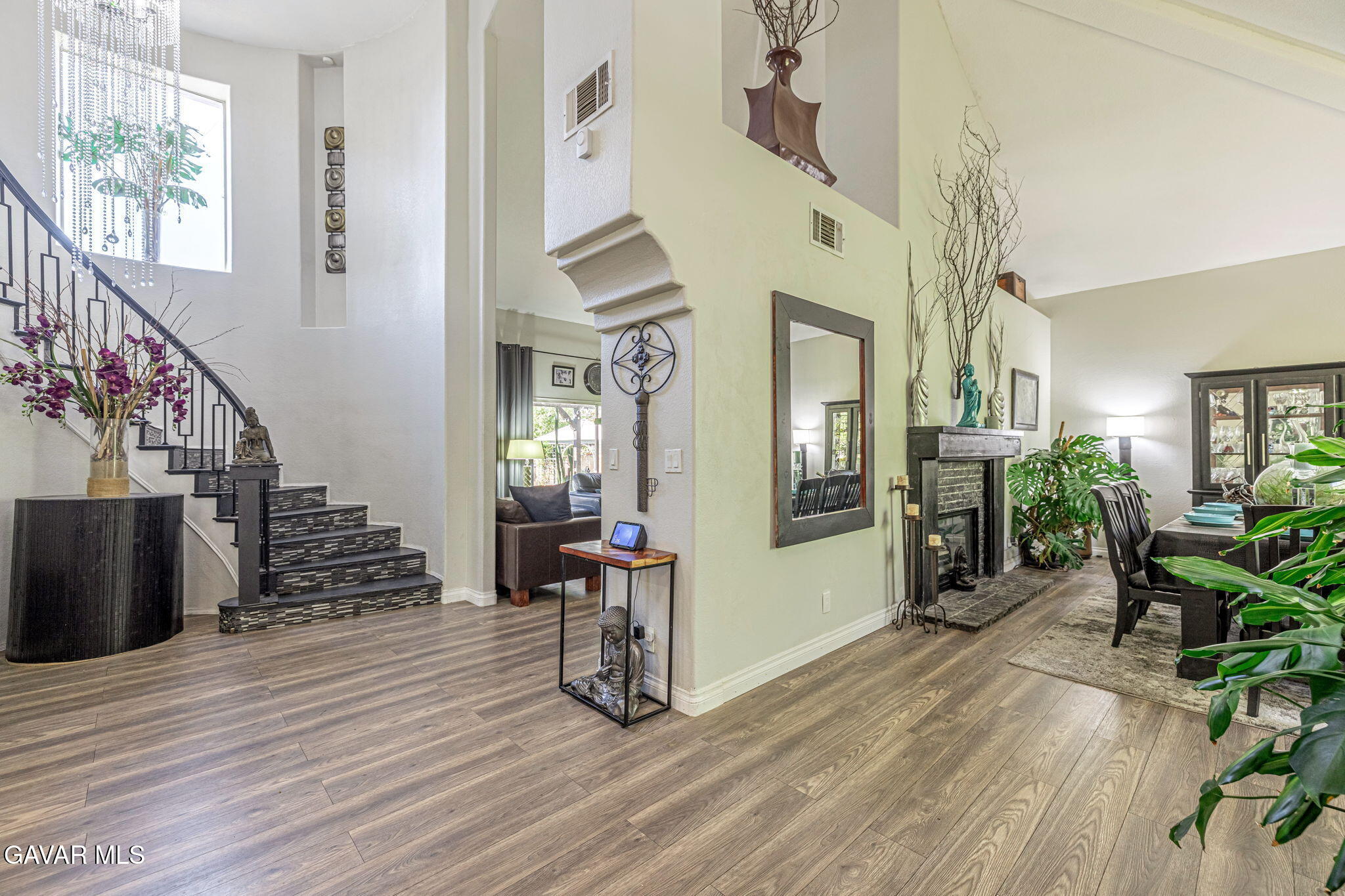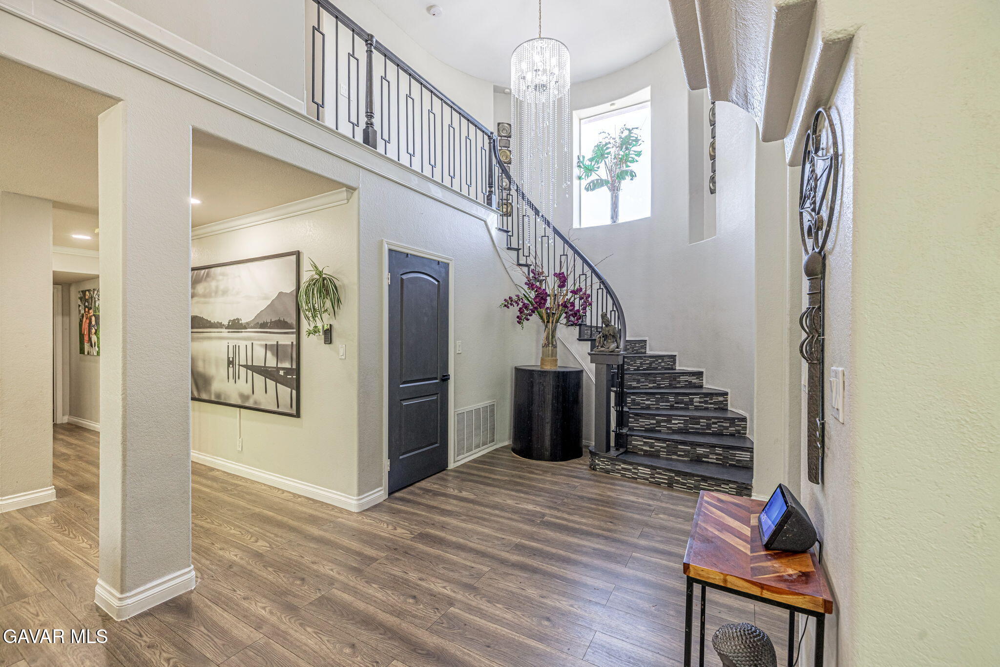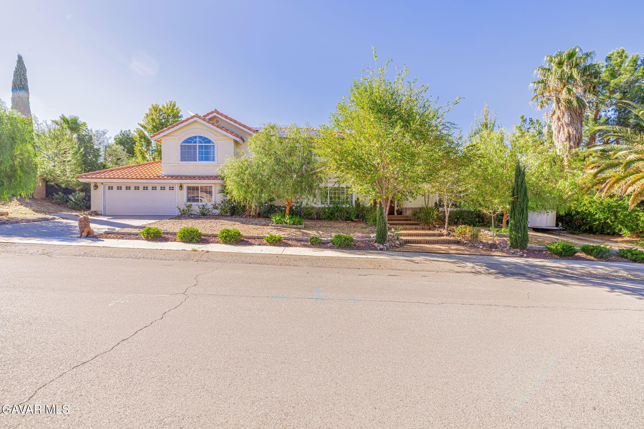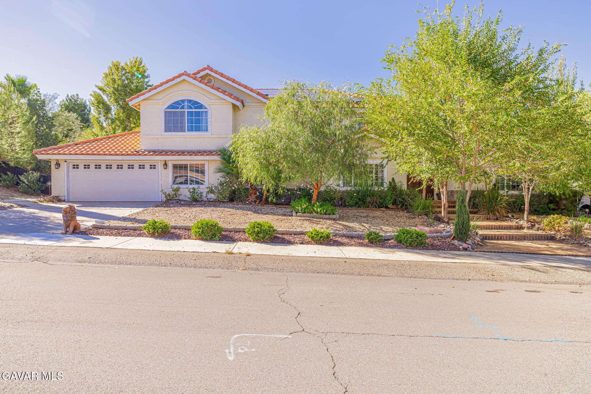 Welcome to a residence where elegance, efficiency, and entertainment unite in one stunning property. Nestled in the prestigious West Palmdale/Quartz Hill area, this luxury estate offers 4 bedrooms, 3 full baths, and 3,218 sq. ft. of refined living space, plus an additional 200 sq. ft. office/flex room not included in the total. Office upstairs can double as 5th bedroom(by adding a closet), provides versatile options for work or leisure.Set on a beautifully landscaped 21,212 sq. ft. lot, this home is designed for resort-style living. Enjoy a Pebble Tec pool and spa, 8-person sauna, covered patio, and multiple outdoor spaces for dining, games, and relaxation under breathtaking sunsets. 46 owned solar panels with two backup batteries, Tesla app integration, and a smart thermostat system for HVAC and irrigation ensure modern energy efficiency and comfort. Through elegant double doors, you're greeted by a grand staircase, chandelier, and bright open floor plan. The formal living (with sliding doors to the backyard) and dining rooms, feature engineered plank flooring, and exquisite architectural details throughout. A downstairs guest suite with nearby full bath offers privacy and flexibility. The primary retreat features a cozy fireplace in the blt-in cabinet (which stays), spa-inspired bath with soaking tub, separate shower, and dual sinks. Upstairs includes additional bedrooms plus a flex space perfect for an office or studio.The gourmet kitchen includes newer stainless appliances (refrigerator incl.), and the laundry room has a built-in desk. A two-car garage provides ample storage and access to the bonus office/fitness room.Surrounded by roses, palm, pomegranate, fig, and apple trees, custom lighting, and multiple entertaining zones, this estate offers a rare blend of luxury, sustainability, and sophistication--a true sanctuary close to top-rated schools, parks, and shopping.