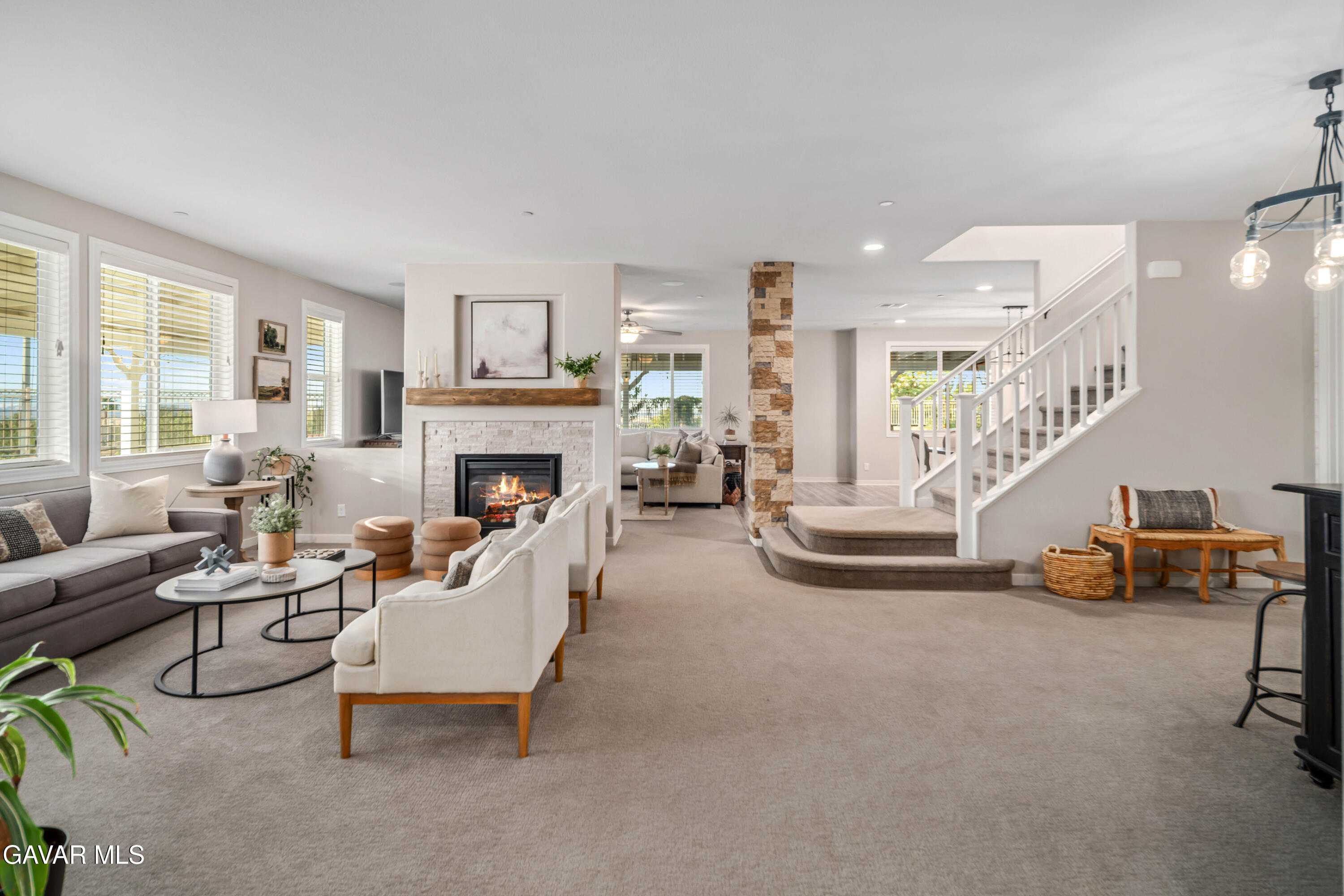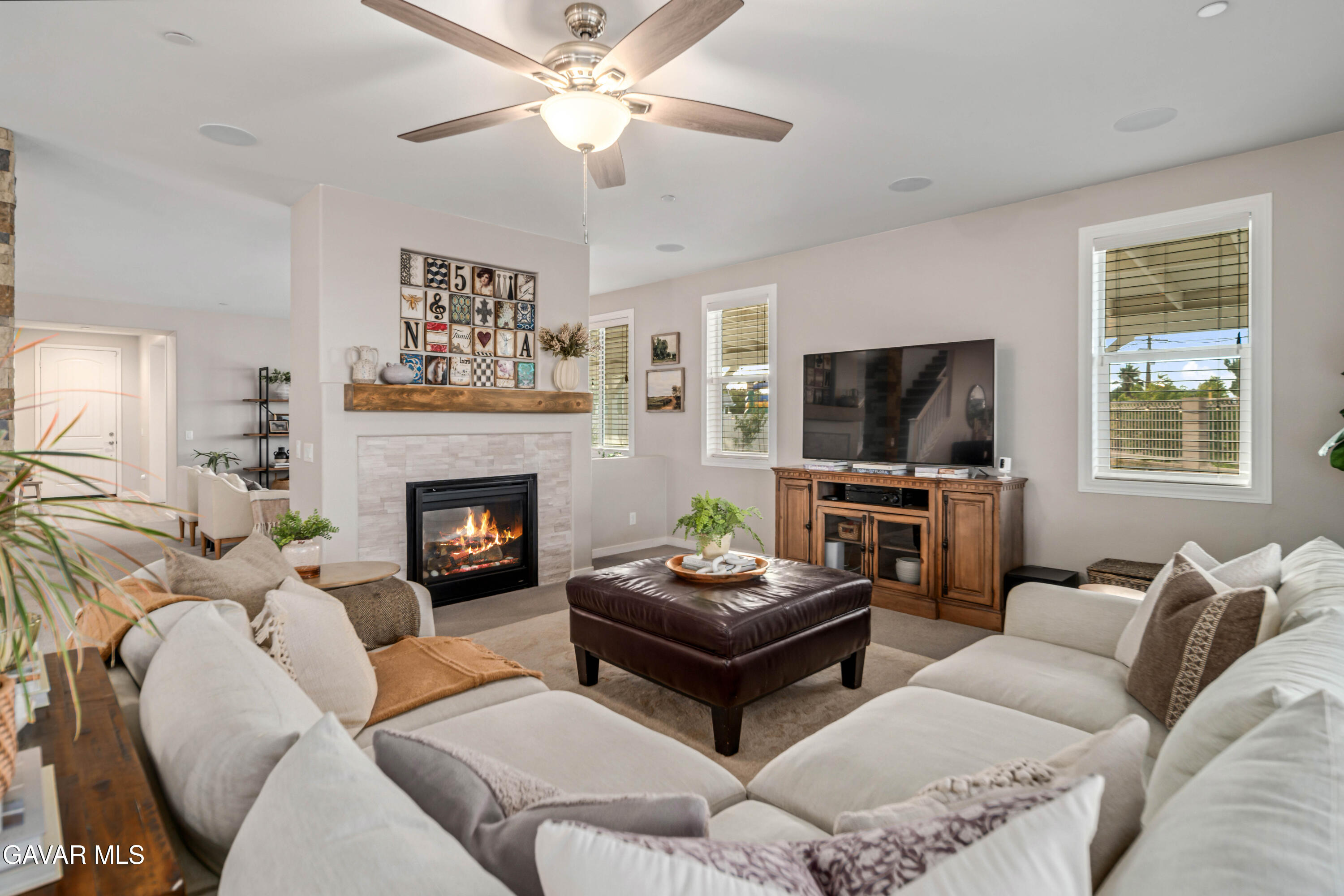 Almost 4,700 sq. ft. of exquisite living! This 5-bedroom, 4-bathroom pool home showcases breathtaking city and mountain views and has been beautifully upgraded throughout. The gourmet kitchen is a showstopper, featuring quartz countertops, soft-close cabinetry, an oversized center island, and an enormous walk-in pantry.The main level welcomes you with a private office, a guest bedroom and full bath, a formal living room with a custom-tiled fireplace, and an expansive family room that flows seamlessly into the informal dining area and kitchen. A versatile den adds even more space for work or play.Upstairs, you'll find a supersized loft, two additional bathrooms--including a Jack & Jill shared by two bedrooms--and a stunning primary suite. The suite boasts a custom wood accent wall, sweeping views, dual walk-in closets, and a spa-like bathroom with dual sinks, a soaking tub, and a separate shower.Step outside to your own private retreat. The backyard is an entertainer's dream, thoughtfully designed with custom hardscaping, a built-in fire pit, two expansive covered patios, and a brand-new in-ground pool and spa (completed May) with a Baja shelf entry. Nearly every window frames spectacular views, making this home truly unforgettable.This home showcases sophisticated upgrades and designer finishes inside and out, with every detail thoughtfully crafted, even offering convenient RV access.