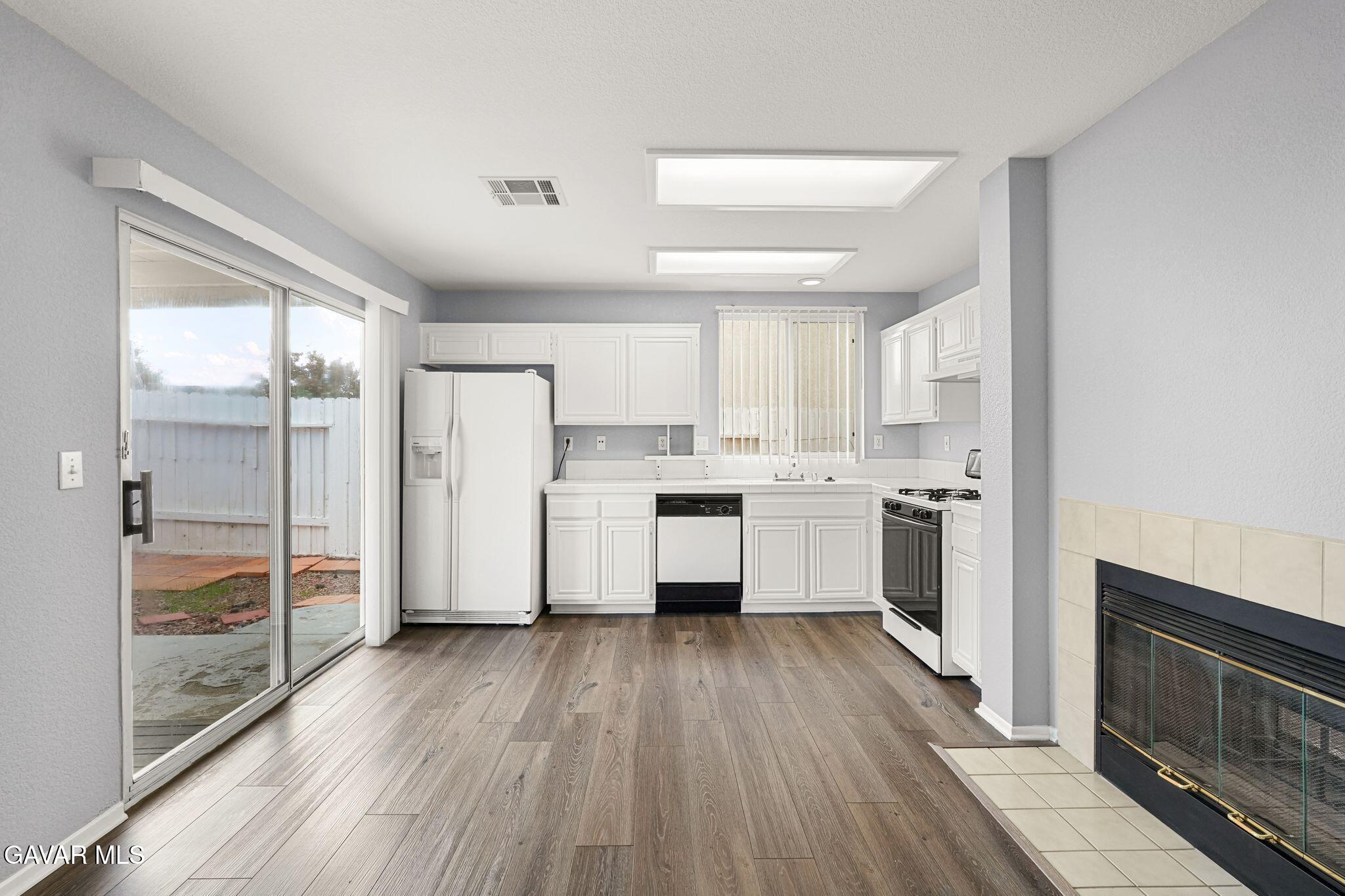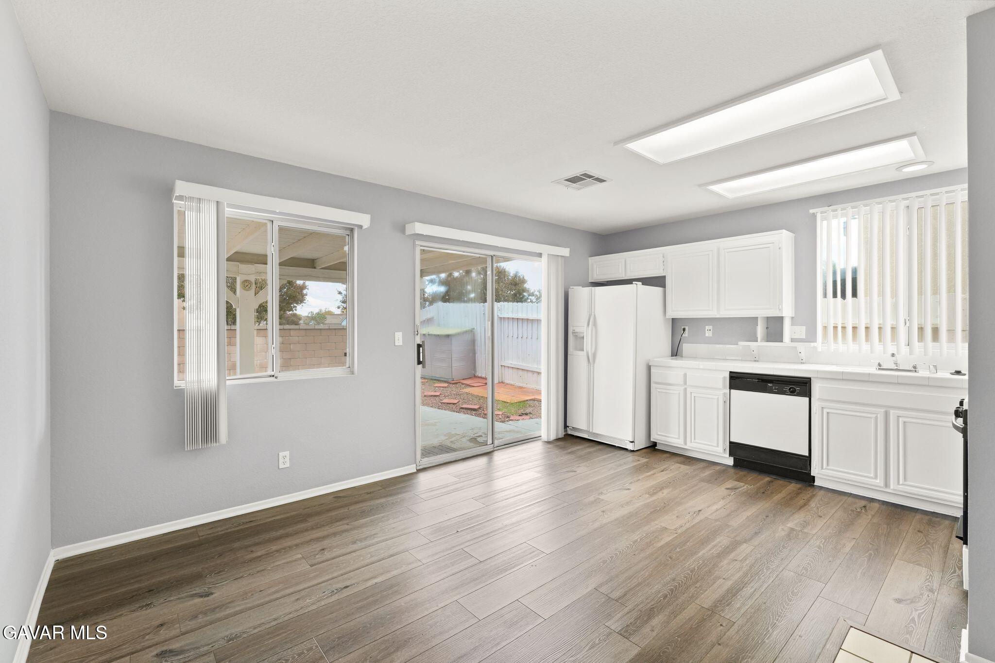 Located in a sought-after community just steps from Westpark Elementary School, this charming residence offers wonderful curb appeal with a concrete pathway leading to a welcoming front porch. Upon entry, you are greeted by a spacious living room highlighted by a dual-sided fireplace--perfect for creating a warm and inviting atmosphere. The adjacent dining area seamlessly flows into the open-concept kitchen, complete with classic wood cabinetry and tile countertops. The family chef will appreciate preparing holiday meals while enjoying views of the rear yard and the covered patio. Nothing beats savoring the perfect meal by the glow of your fireplace--this home truly warms the heart. Down the hallway are the spacious secondary bedrooms, each offering wall-to-wall closet storage and easy access to the full hallway bathroom. The primary bedroom features a generous walk-in closet and its own private full bathroom for added comfort and convenience. The indoor laundry room includes side-by-side appliances and overhead shelving, with direct interior access to the attached 2-car garage featuring painted concrete finished floors. Outside, you'll find designed drought-tolerant landscaping with rock accents, creating a low-maintenance and serene outdoor environment. The covered patio is an ideal space for hosting your holiday festivities and welcoming in the new year. This home offers comfort, charm, and a fantastic location--truly a wonderful opportunity.