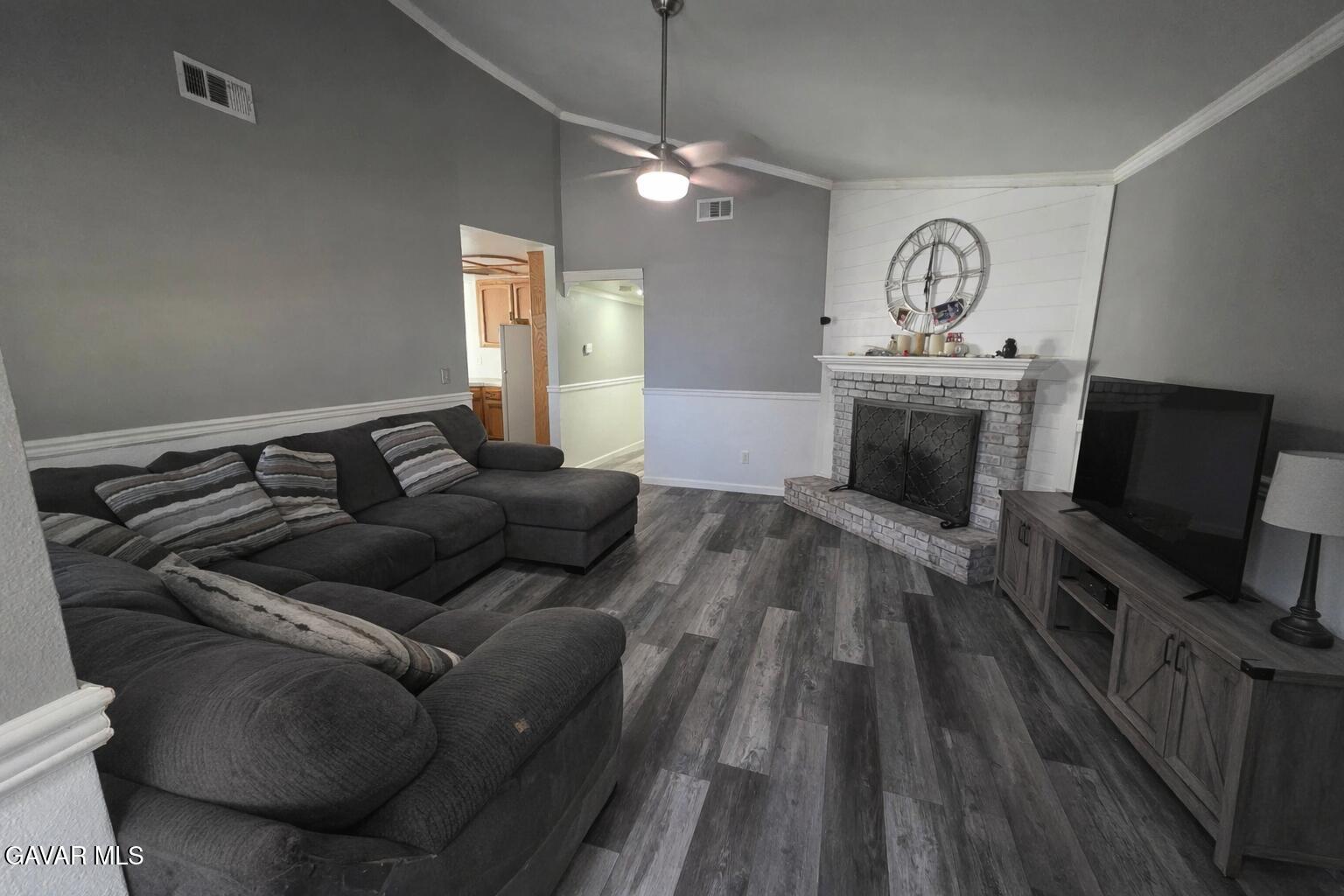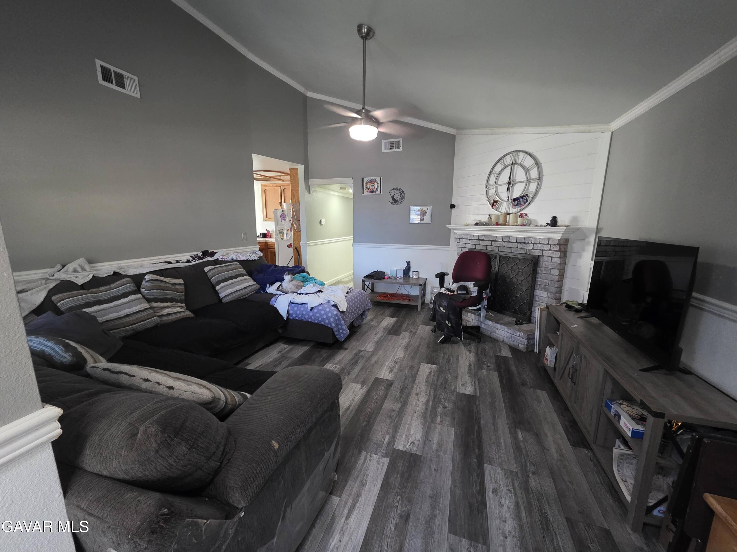 Welcome to 11125 Rome Beauty Dr, a charming single-story home in a quiet California City neighborhood offering comfort, space, and tremendous potential. This residence features a bright living room with vaulted ceilings, modern gray-tone flooring throughout, and a cozy brick fireplace that creates a warm centerpiece for the home. The kitchen includes ample cabinet storage, tile countertops, and a functional peninsula overlooking the dining area, with natural light pouring through large front windows. The home offers well-sized bedrooms, including a primary suite with its own bathroom, plus an additional full hall bath. Both bathrooms are clean and functional, offering a solid foundation for future cosmetic updates. The spacious backyard is a standout feature--fully fenced with block walls, offering room for RV parking, gardening, pets, or future outdoor improvements. Inside, fresh neutral paint and updated flooring provide a cohesive and move-in-ready feel. This property is ideal for first-time buyers, families, or anyone looking for a well-located home with usable indoor space and a large lot. Located near schools, parks, and major employers such as Edwards AFB, this home delivers everyday convenience and long-term value. Don't miss this opportunity to own a solid California City home with room to grow and customize.