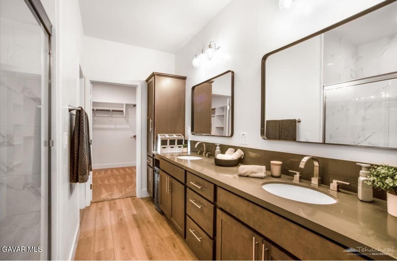 New construction home in Stallion Springs.Nestled on a charming corner in Stallion Springs, this home is graced by a stunning oak tree and offers a thoughtfully designed split-wing layout with impressive upgrades. The kitchen boasts elegant white and grey quartz countertops complemented by a stylish greybacksplash, while the rich-toned cabinetry adds warmth to the space. Living room is open concept to Kitchen.Do you need a dedicated home office well there is one located off hallway by Master Suite and it has great views out the office window.A full bath situated between two bedrooms provides ample storage and features a beautifully tiled shower/bathtub area. At the end ofthe hall, a spacious closet ensures plenty of storage options.The master suite is exceptionally roomy, with a dedicated closet perfect for storing purses or extra shoes, along with a convenientvanity/desk space. Its adjoining bathroom is simply stunning featuring dark grey countertops, abundant cabinetry, double sinks, and an oversized walk-in closet. For guests, there's a convenient half-bath, while the large laundry area is thoughtfully placed just off the garage. Speaking of the garage it's oversized, complete with a sleek grey concrete slab and baseboards. Solar is the required amount per code not enough to not have a power bill but may help lower bill. Buyer will have fee to put in there name after close. Buyer to verify cost if any on solartransfer. Solar panels are at no cost to buyer and have been paid for by builder. solar is a limited amount and you will have an Edisonbill as well.