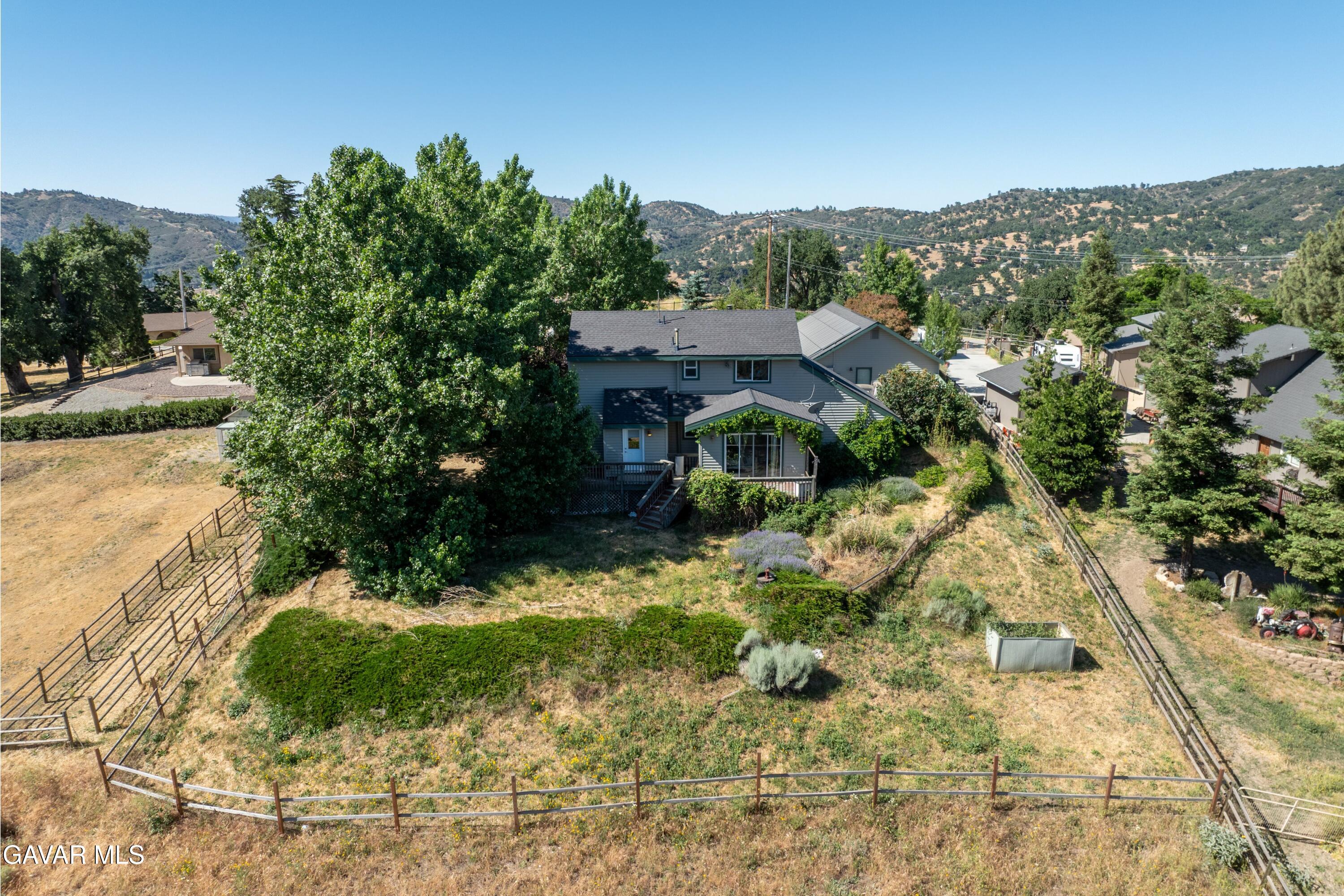 Welcome to your potential dream home in the serene Bear Valley Springs community of Tehachapi! With just a little bit of TLC, this spacious 1,952 sq. ft. home offers incredible potential, featuring three comfortable bedrooms and two bathrooms. Nestled on a generous 1.29-acre lot, this property is just minutes from the valley floor, providing easy access to all the beauty and activities Tehachapi has to offer.The home boasts a brand new roof and paid solar, ensuring you won't have to worry about electricity bills. The expansive potential four-car garage provides ample space for vehicles and storage, while the possibility of an unfinished ADU offers a unique opportunity to create additional living space or rental income.Step outside onto the inviting deck that wraps around the side and back of the home, perfect for entertaining guests or simply enjoying the stunning views in peace and privacy. Inside, you'll find a cozy family room and a semi-open kitchen complete with an island, ideal for cooking and gathering. A bonus den space provides extra room for relaxation or work.The main floor offers a master suite and ensuite with the additional two bedrooms and two bathrooms are conveniently located upstairs, offering a quiet retreat after a long day. With its charming features and excellent location, this home is ready for your personal touch to make it your own! Don't miss out on this rare opportunity in Bear Valley Springs!