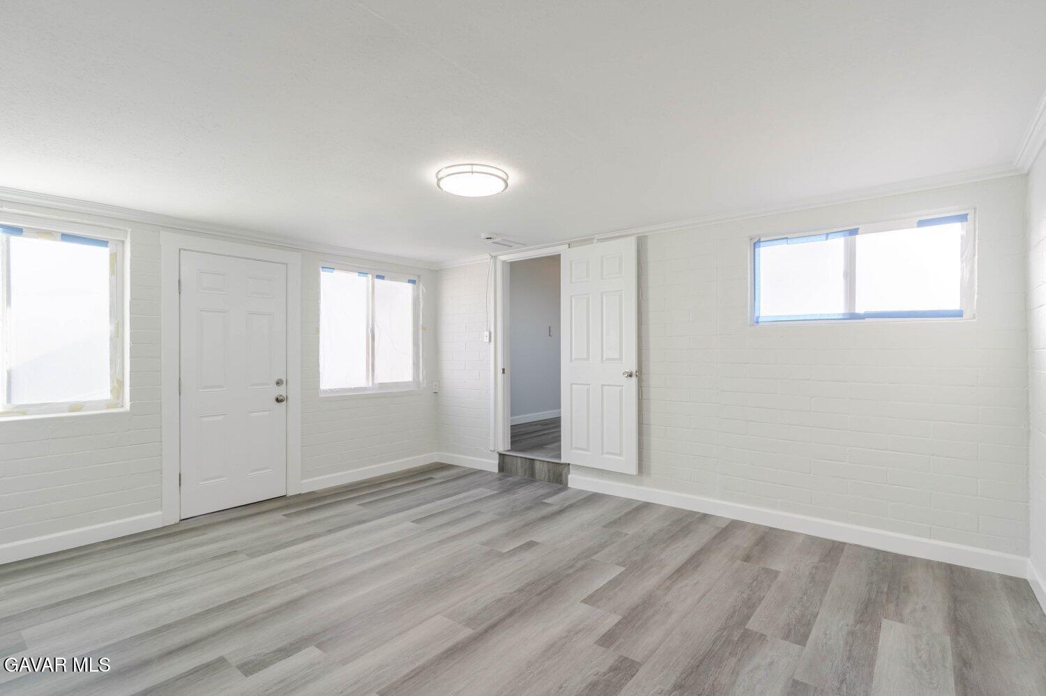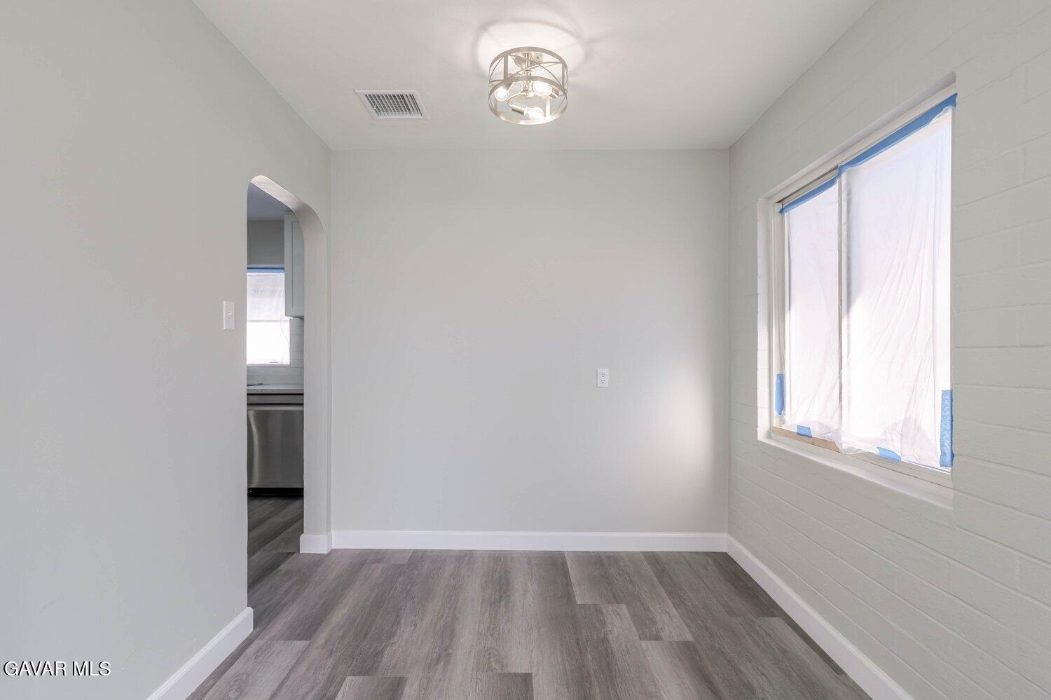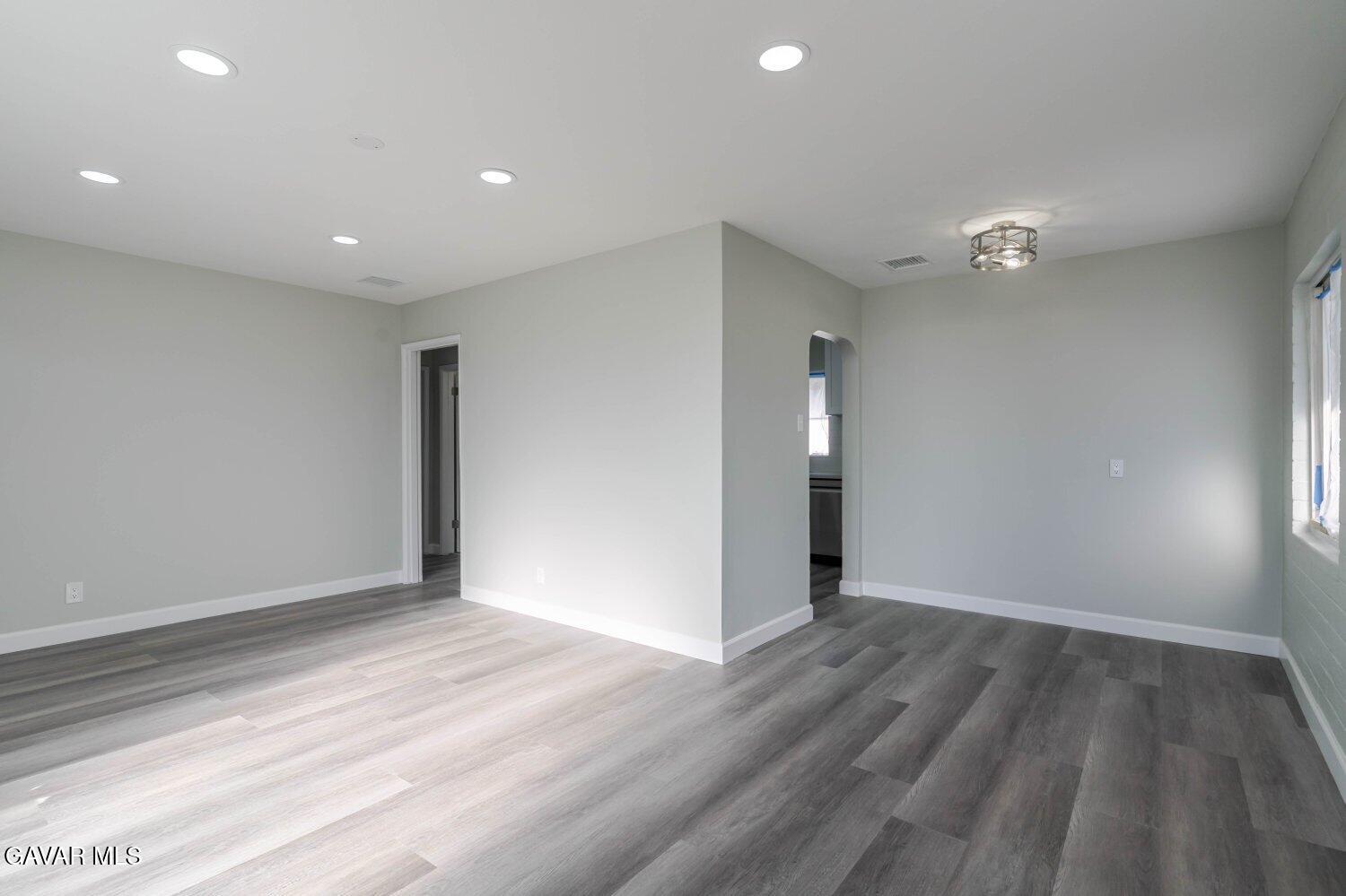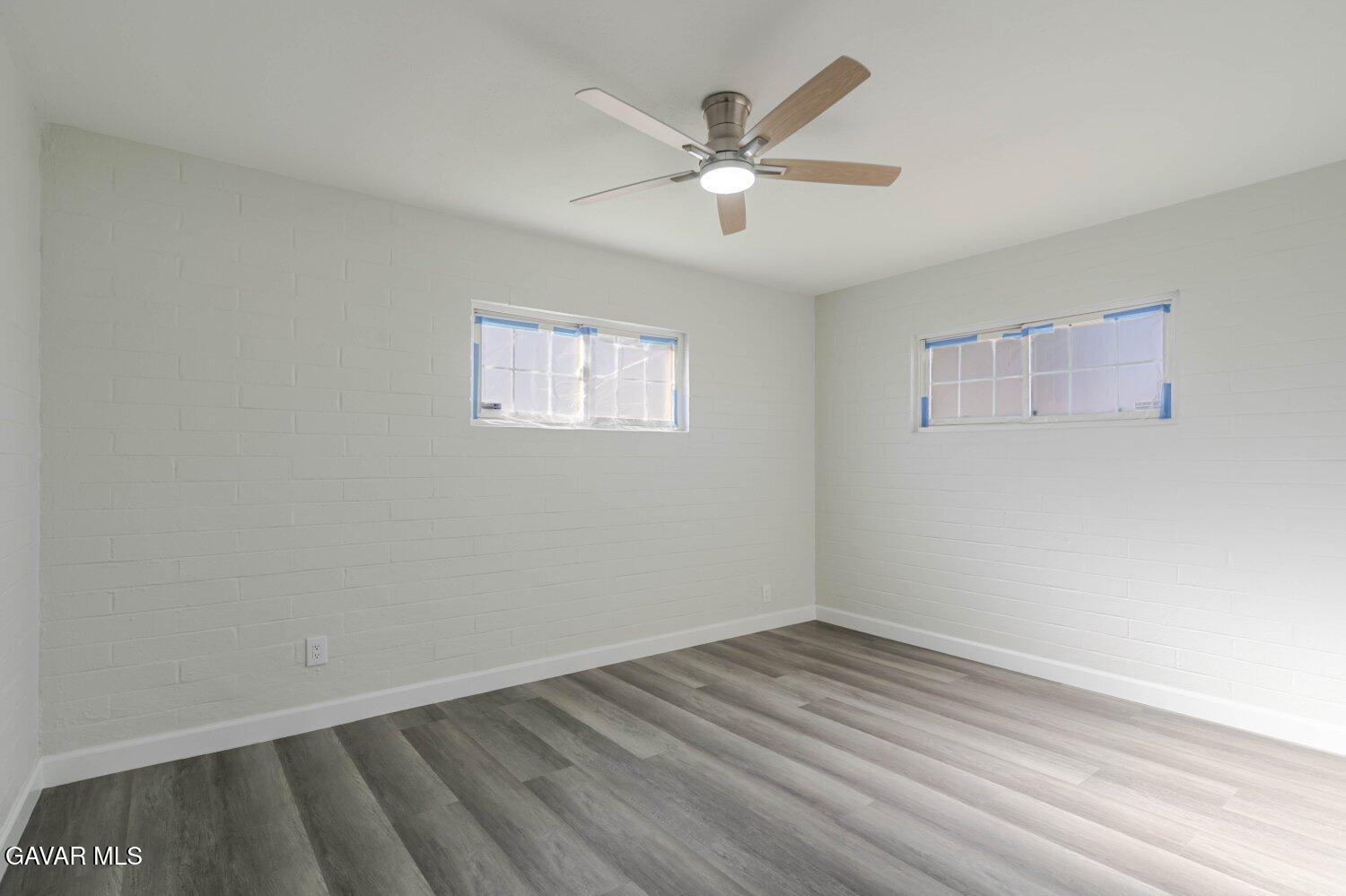 Charming Single-Family Home with Spacious Yard & Modern UpgradesWelcome to this well-maintained single-family residence offering 3 bedrooms and 1 beautifully updated bathroom across approximately 1,286 sq ft of comfortable living space. Situated on a generous 8,281 sq ft lot, this home features both a front and backyard, perfect for outdoor entertaining, gardening, or relaxing.The interior showcases fresh white paint throughout, recessed lighting, ceiling fans, and stylish gray laminate flooring that creates a bright and cohesive feel. The kitchen is thoughtfully upgraded with quartz countertops, stainless steel appliances, and a clean white backsplash, combining functionality with modern design.The remodeled bathroom features a tiled shower/tub combination, while a dedicated laundry room provides washer and dryer hookups for added convenience. A detached 2-car garage offers ample parking and storage.This inviting home blends comfort, style, and space, an excellent opportunity for anyone seeking a move-in-ready single-family residence.