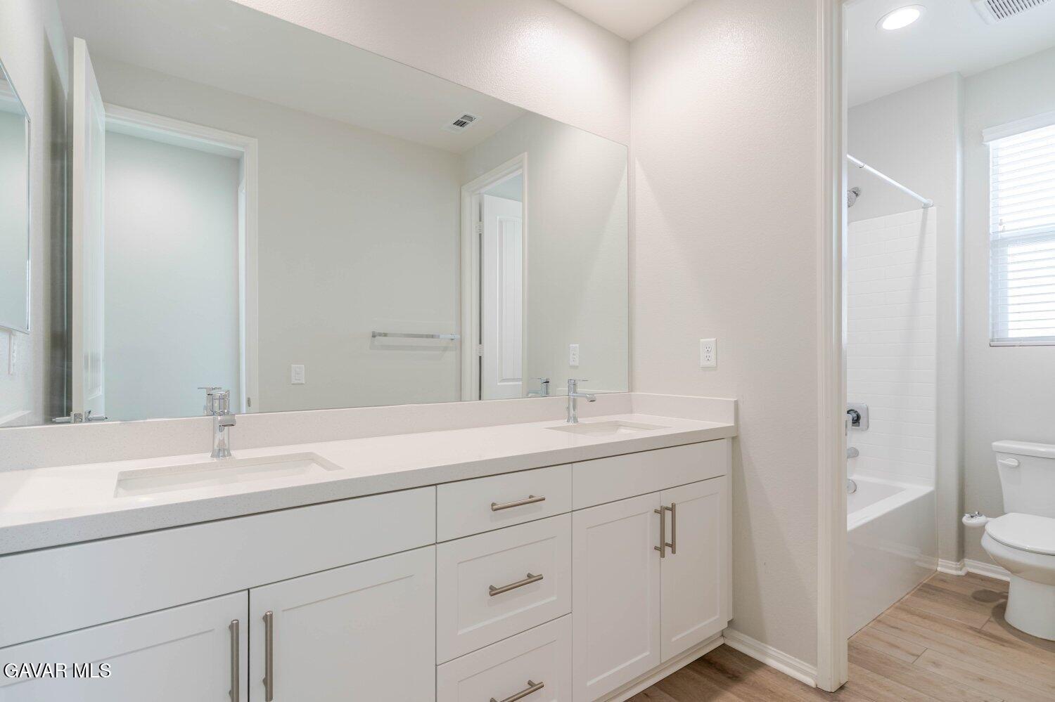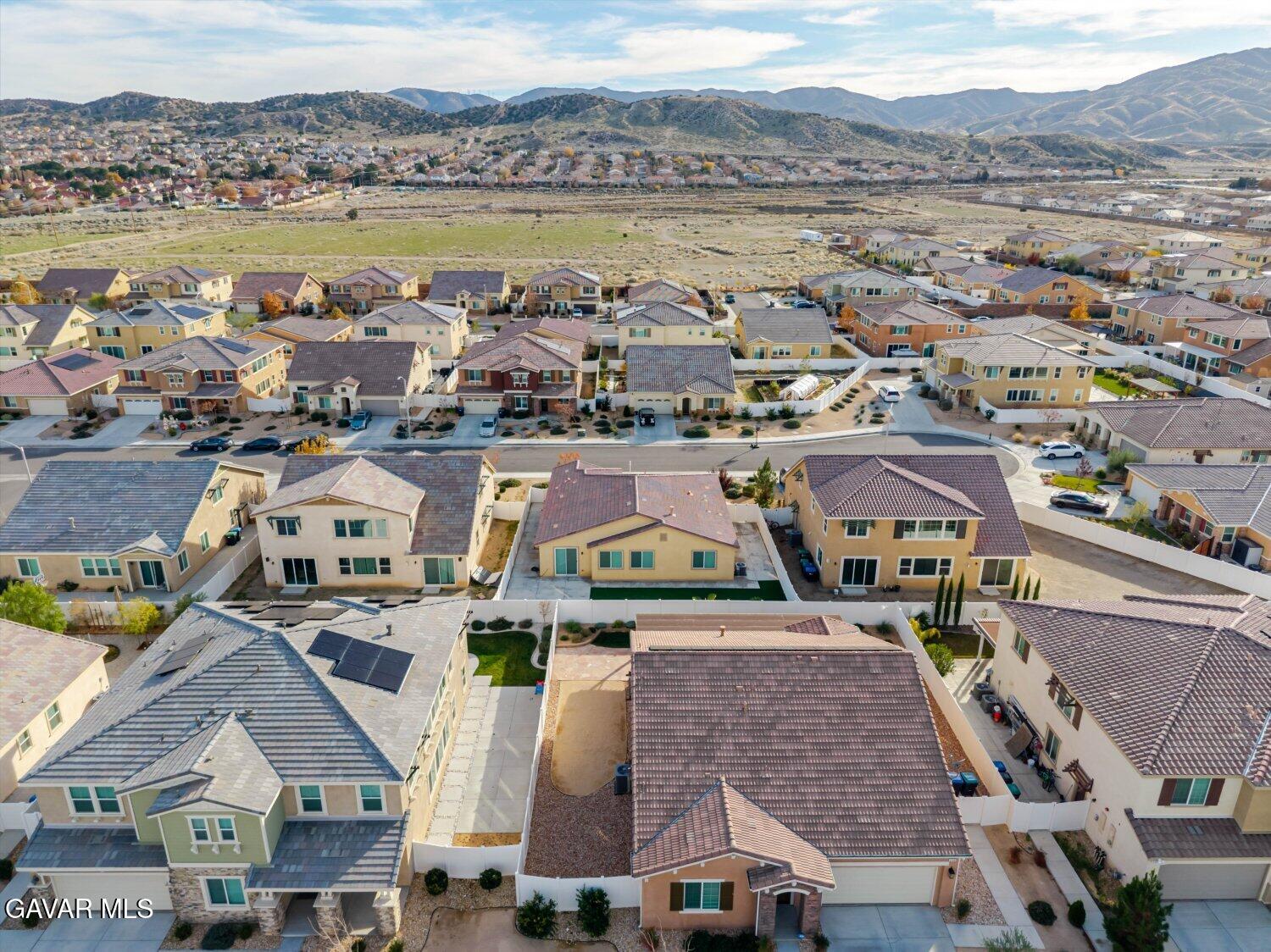 Welcome to 2107 Helconia Court, Palmdale, CA 93551. A modern, single-story home built in 2021, nestled in a quiet cul-de-sac within a newer community with no HOA. This beautifully upgraded 3-bedroom, 2-bath residence offers 2,218 sq ft of open-concept living space on a spacious 7,070 sq ft lot. Inside, an airy floorplan filled with natural sunlight is enhanced by laminate flooring throughout, recessed lighting, and blinds installed across the home. The expansive kitchen features extended countertops, ample cabinetry, a large pantry, and stainless steel appliances including the stove, dishwasher, and refrigerator. The primary bedroom offers comfort and sophistication with a spacious walk-in closet, a built-in large walk-in shower, and thoughtful owner-added upgrades. Enjoy year-round comfort with central AC and heat, solar, and a well-designed layout that includes a dedicated laundry room with washer and dryer included. Outside, the backyard features partial concrete work already completed, ideal for low-maintenance outdoor living and future customization. The property also includes a two-car garage and a sprinkler system for added convenience. This home blends contemporary style with practical functionality and is truly move-in ready with numerous upgrades already completed.