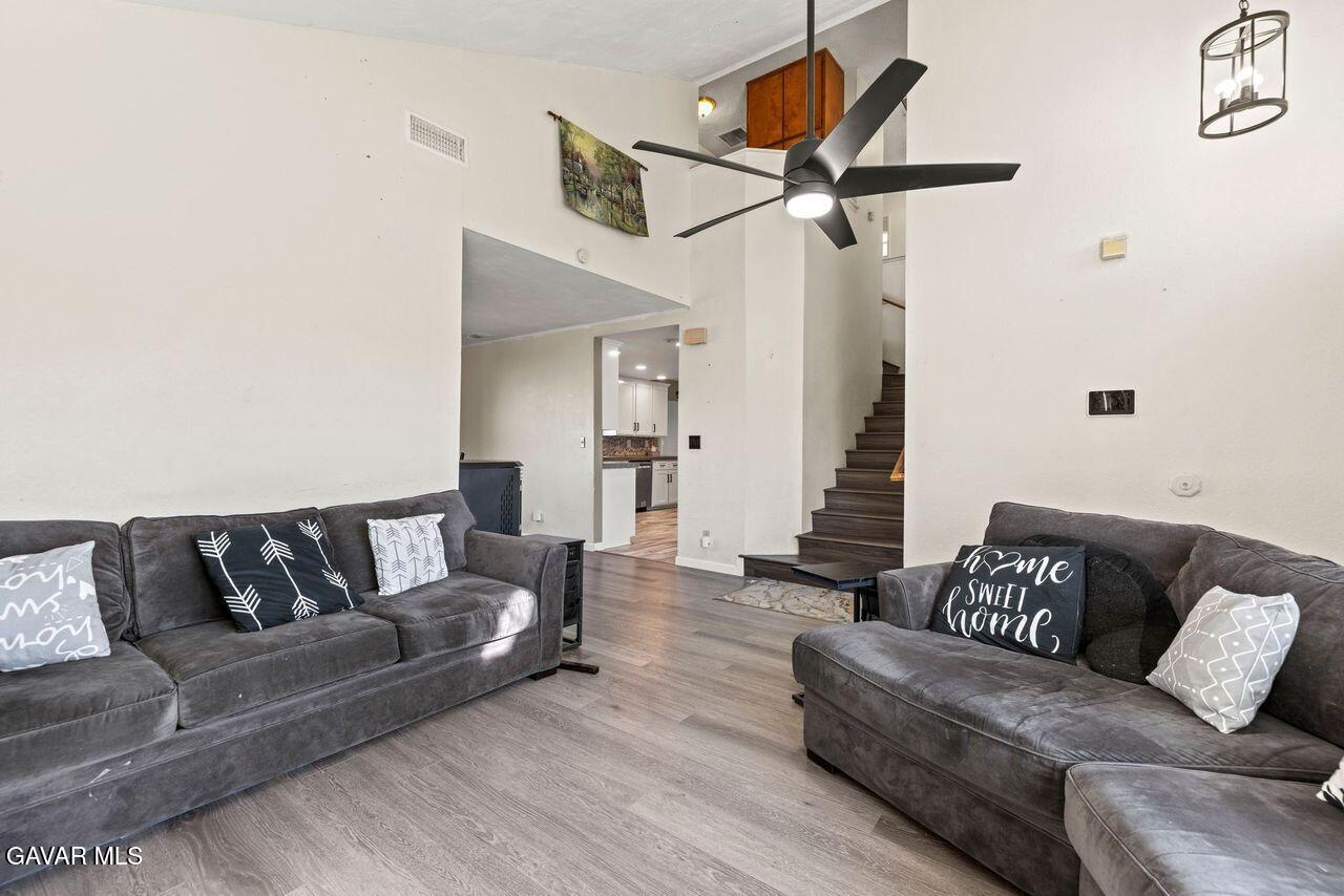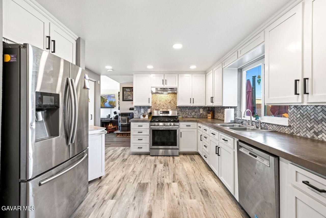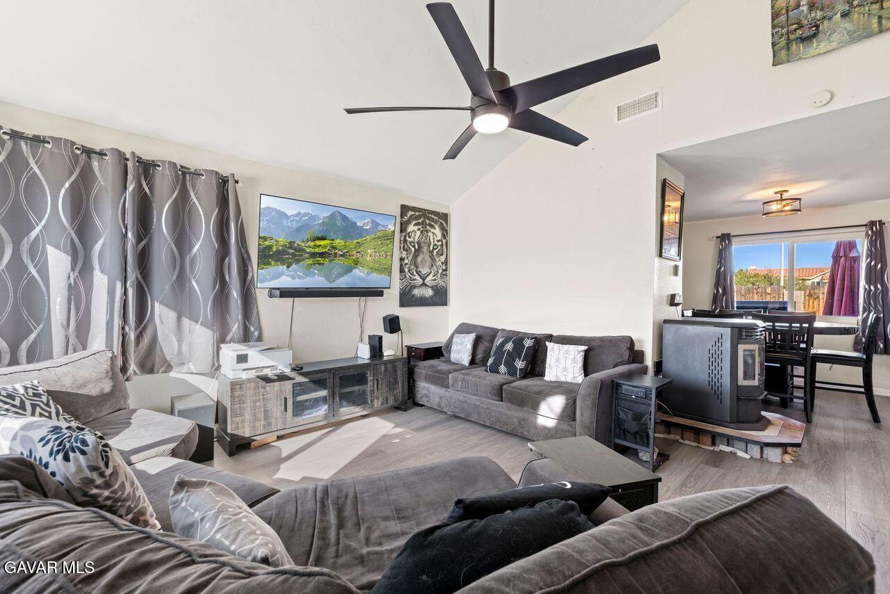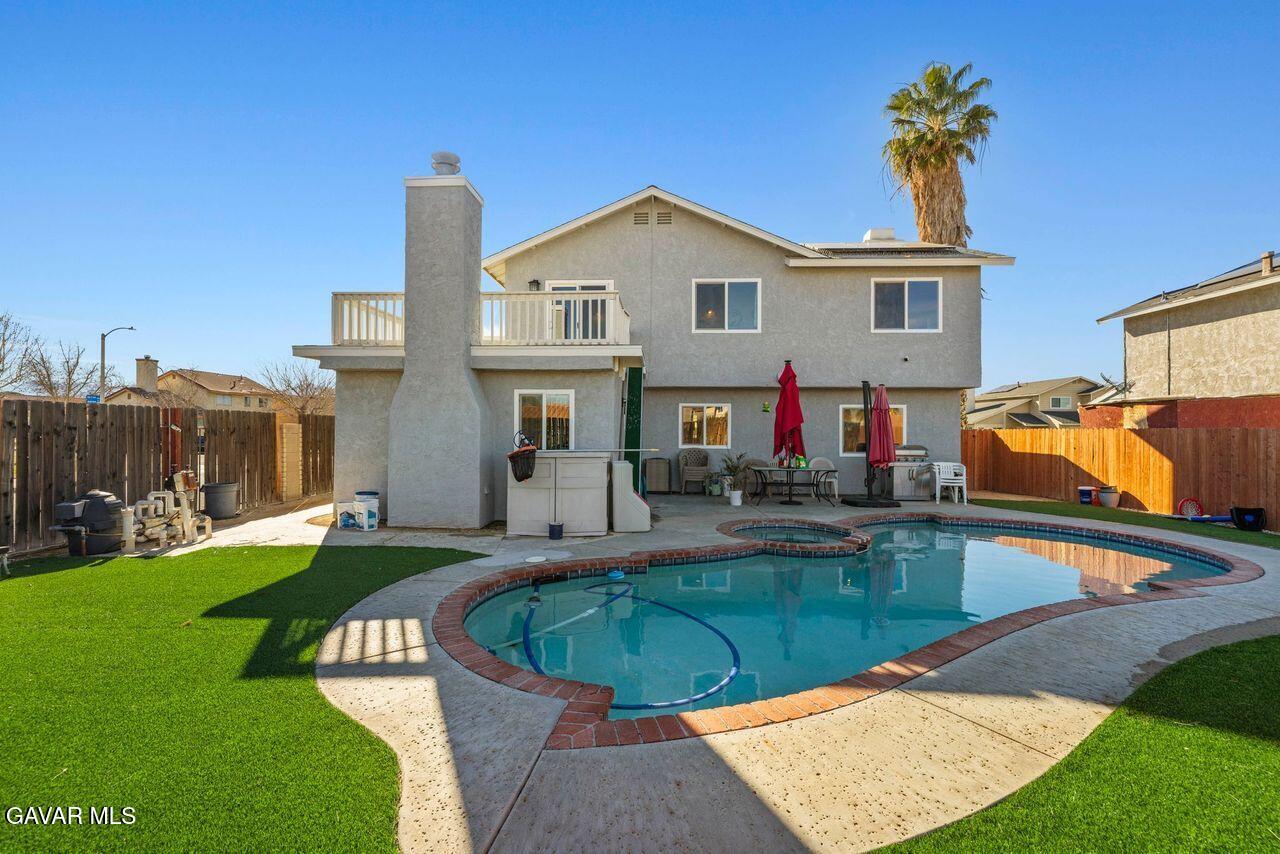 Stunning pool and spa home at the end of a cul-de-sac, step into your formal living room with vaulted ceilings and newer laminate style wood flooring, and a freestanding fireplace, formal dining room, enter your fully remodeled kitchen with custom cabinets and counters, stainless steel appliances, attached to a den addition with another fireplace WOW so cool, the backyard is a oasis, pool, spa, imitation grass so green all year and no water needed, indoor laundry and half bath downstairs,, upstairs 4 bedrooms, a balcony and two bathrooms, newer AC, SOLAR buyer to assume the existing lease,
