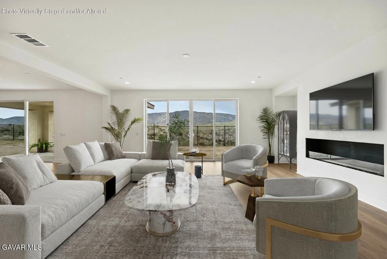 Welcome to this breathtaking estate home located in the prestigious, gated community of Joshua Ranch. Built in 2024 and tucked away on a quiet cul-de-sac, this stunning residence offers panoramic desert views, peace, and privacy on an expansive lot large enough for a future pool, spa, and outdoor entertaining oasis.This exceptional home features 5 bedrooms, 4.5 bathrooms, plus an office and spacious loft, making it ideal for multigenerational living or hosting guests. The thoughtfully designed floor plan includes a downstairs bedroom with an en-suite bathroom, along with a downstairs office accented by a custom barn door.The heart of the home is the gourmet kitchen, complete with a massive center island, upgraded quartz countertops, premium Bosch appliances, a five-burner cooktop, dishwasher, built-in microwave, additional single wall oven, and an upgraded walk-in pantry with a dedicated space for a second refrigerator or freezer. An indoor fireplace and covered patio create the perfect setting for both everyday living and entertaining.Upstairs, retreat to the luxurious primary suite featuring a private balcony with sweeping views, a spa-like en-suite bathroom with an oversized shower, dual vanities, and a generous walk-in closet. The upstairs laundry room includes a sink and is conveniently located near the bedrooms.Additional highlights include paid-off solar panels, an EV charger, and an oversized three-car garage. This remarkable estate blends modern luxury with serene desert surroundings--offering comfort, elegance, and unforgettable views.