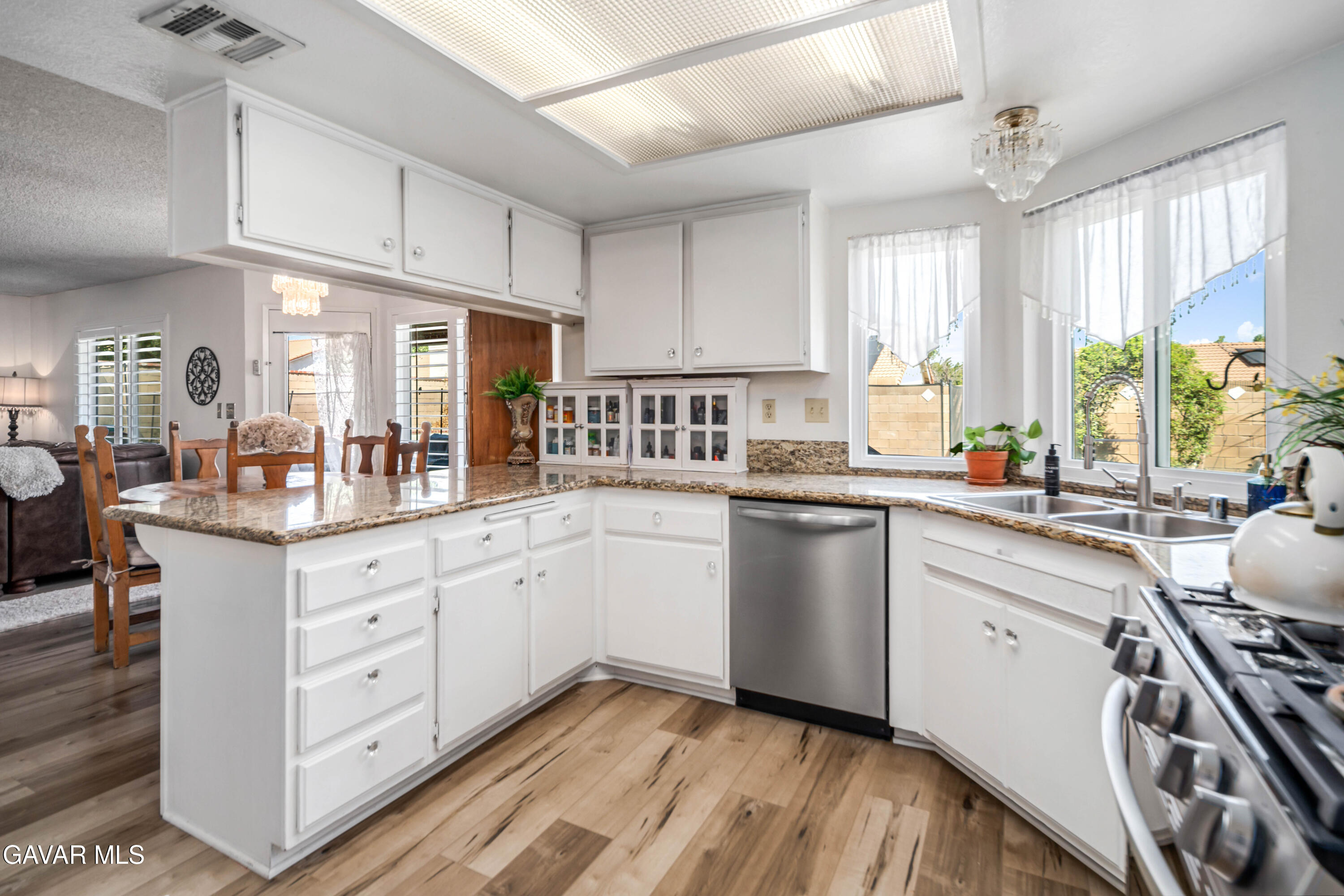 Stunning Home with Pool & RV Access in Rancho Vista! Welcome to this light and bright 4-bedroom, 2.5-bathroom home located in the Rancho Vista neighborhood of Palmdale. Featuring vaulted ceilings and high-quality laminate flooring throughout the main level, this home offers both comfort and style. The spacious kitchen boasts granite countertops and opens to the inviting family room, complete with a cozy fireplace--perfect for gatherings and relaxation. Upstairs, you'll find a convenient laundry area and plush carpeting in the bedrooms. The primary suite is a true retreat, featuring a large walk-in closet and an ensuite bath with dual sinks, a soaking tub, and a separate step-in shower. Step outside to your own private resort-style backyard, which includes a sparkling pool and spa, a covered patio for entertaining, a lush grassy area, and a large storage shed. The home also features newer windows, fresh exterior paint, and a leased solar system for energy efficiency. Additional highlights include a wide driveway with RV access and a prime location near schools, shopping, and recreational areas. Don't miss this incredible opportunity to own a beautifully maintained home!