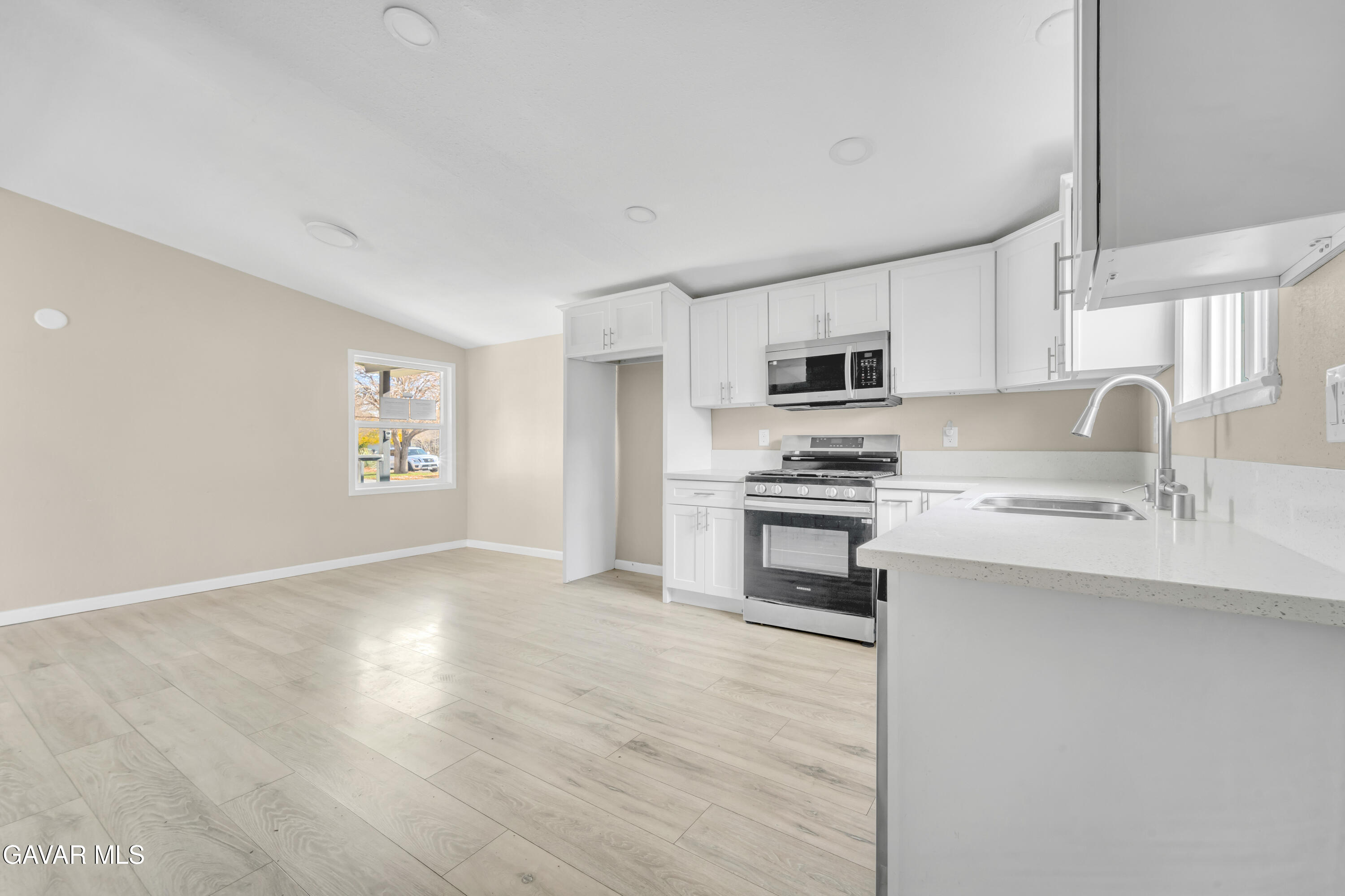 Here is your chance to own this 4-bedroom, 2-bathroom single-story home, situated on a cul-de-sac. This kitchen, which has solid surface counters and stainless-steel appliances, is open to the eat in dining area. The living room has vaulted ceilings and a brick fireplace as well as direct access to the rear yard. The backyard provided space and potential to make it your own. Don't miss the opportunity to purchase this West Lancaster property.