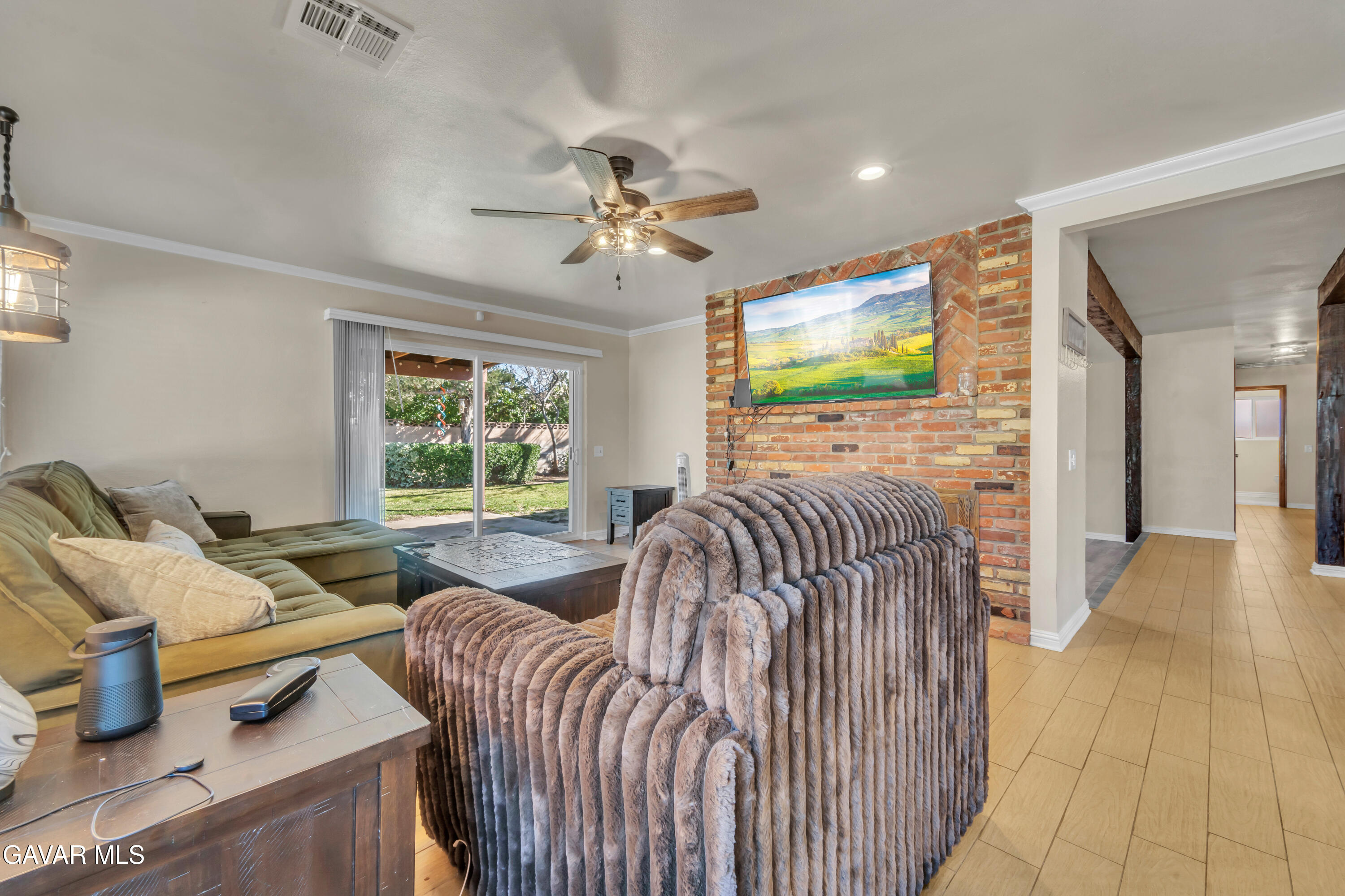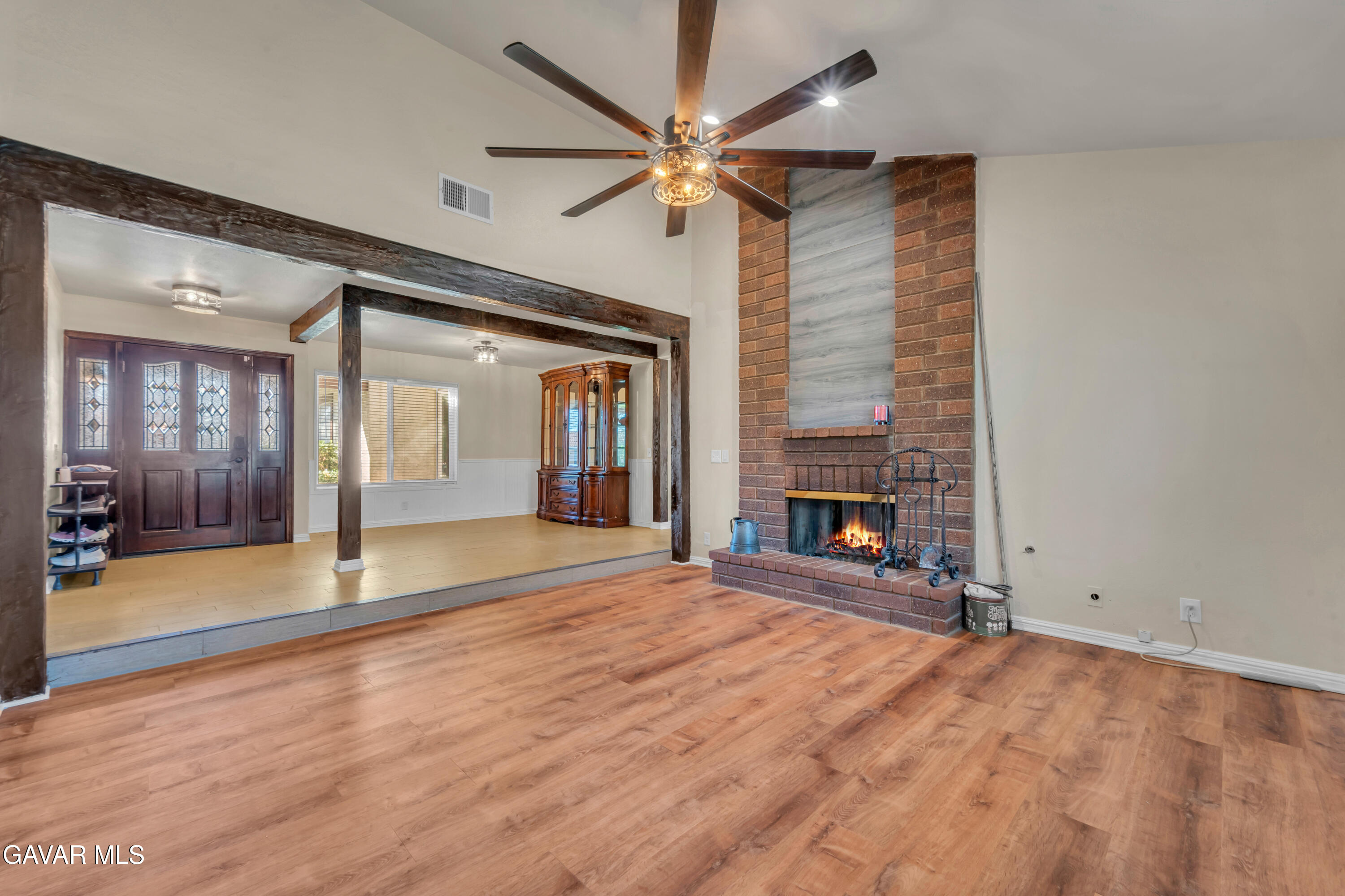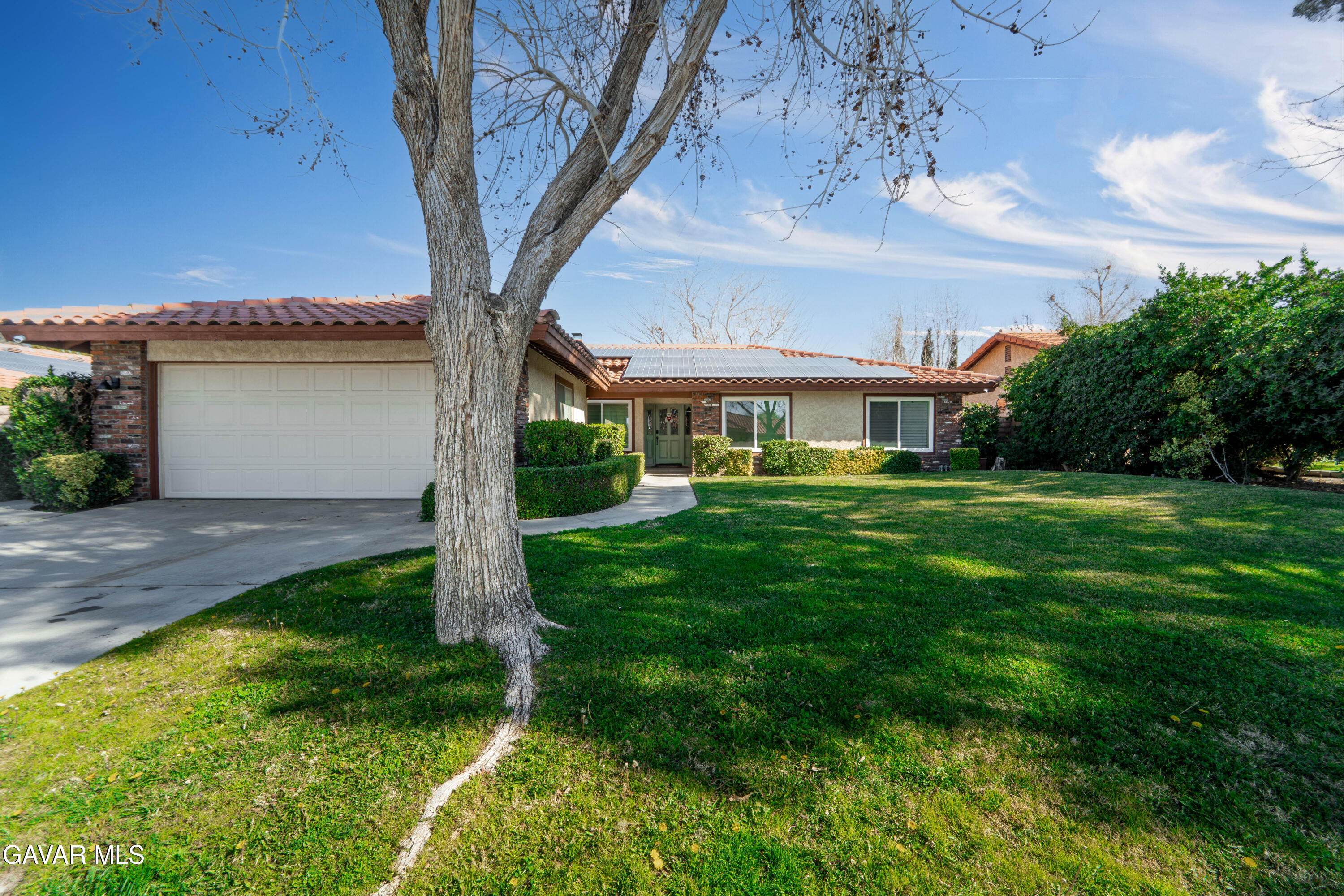 INCREDIBLE OPPORTUNITY! This beautifully maintained Lancaster home offers energy efficiency and comfort with paid off solar panels a new HVAC system and a prime location near the Desert Woodland Reserve. Inside you'll find three spacious bedrooms and two fully upgraded bathrooms featuring a stunning tile walk in shower with glass doors in the primary bathroom and a recently remodeled guest bath with a tiled shower tub combo and built in seating. The kitchen is equipped with brand new professional grade appliances, including a built in wine/beverage cool, and the refrigerator washer and dryer are included adding exceptional value. A striking dual sided fireplace creates a warm focal point perfectly shared between the living room and family room for both everyday living and entertaining. Outside enjoy mature landscaping in both the front and backyard along with a large storage shed on the side yard ideal for tools equipment or extra storage. This home blends thoughtful upgrades functionality and a desirable natural setting making it a true must see. Please call for your appointment today.