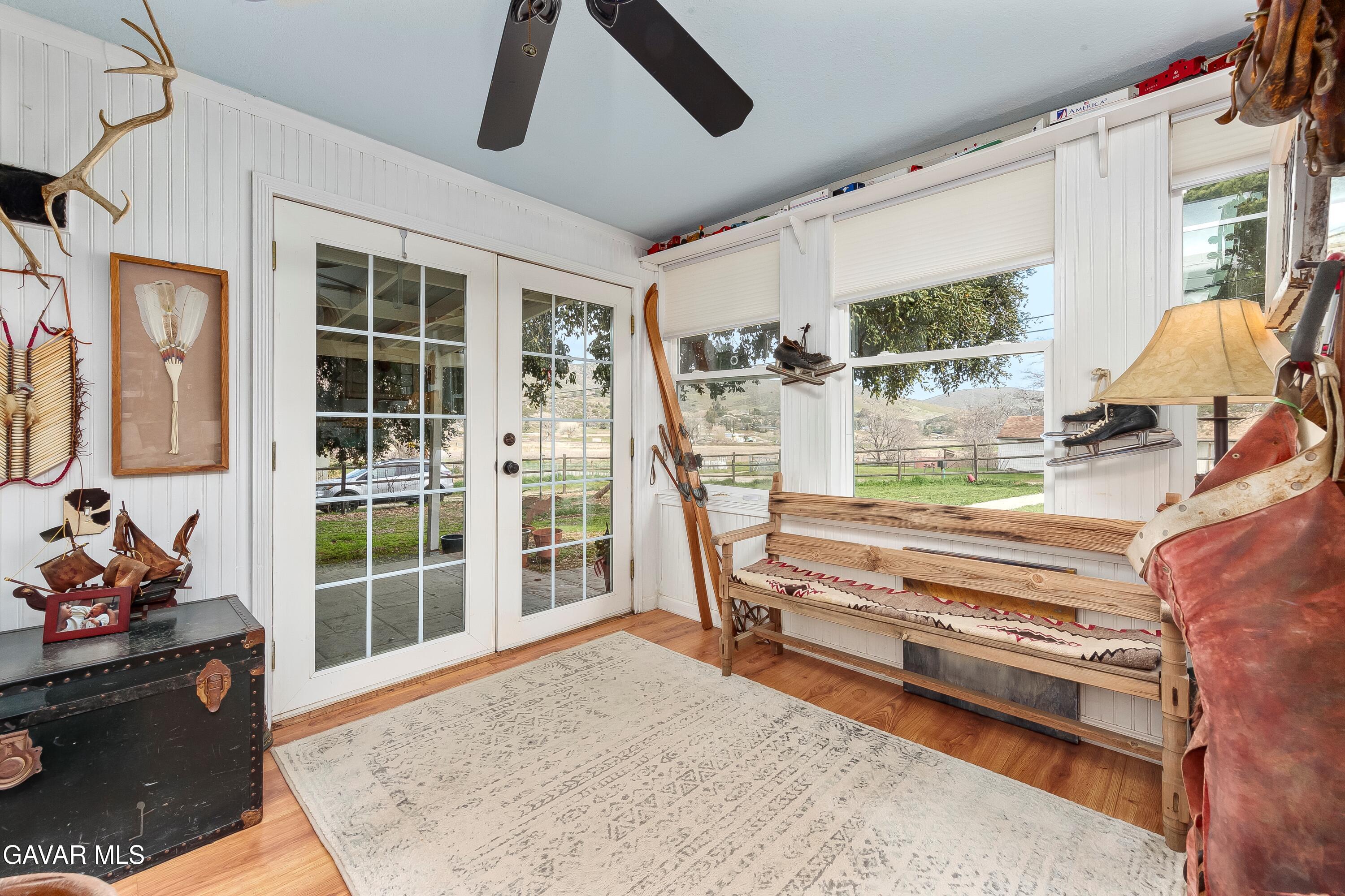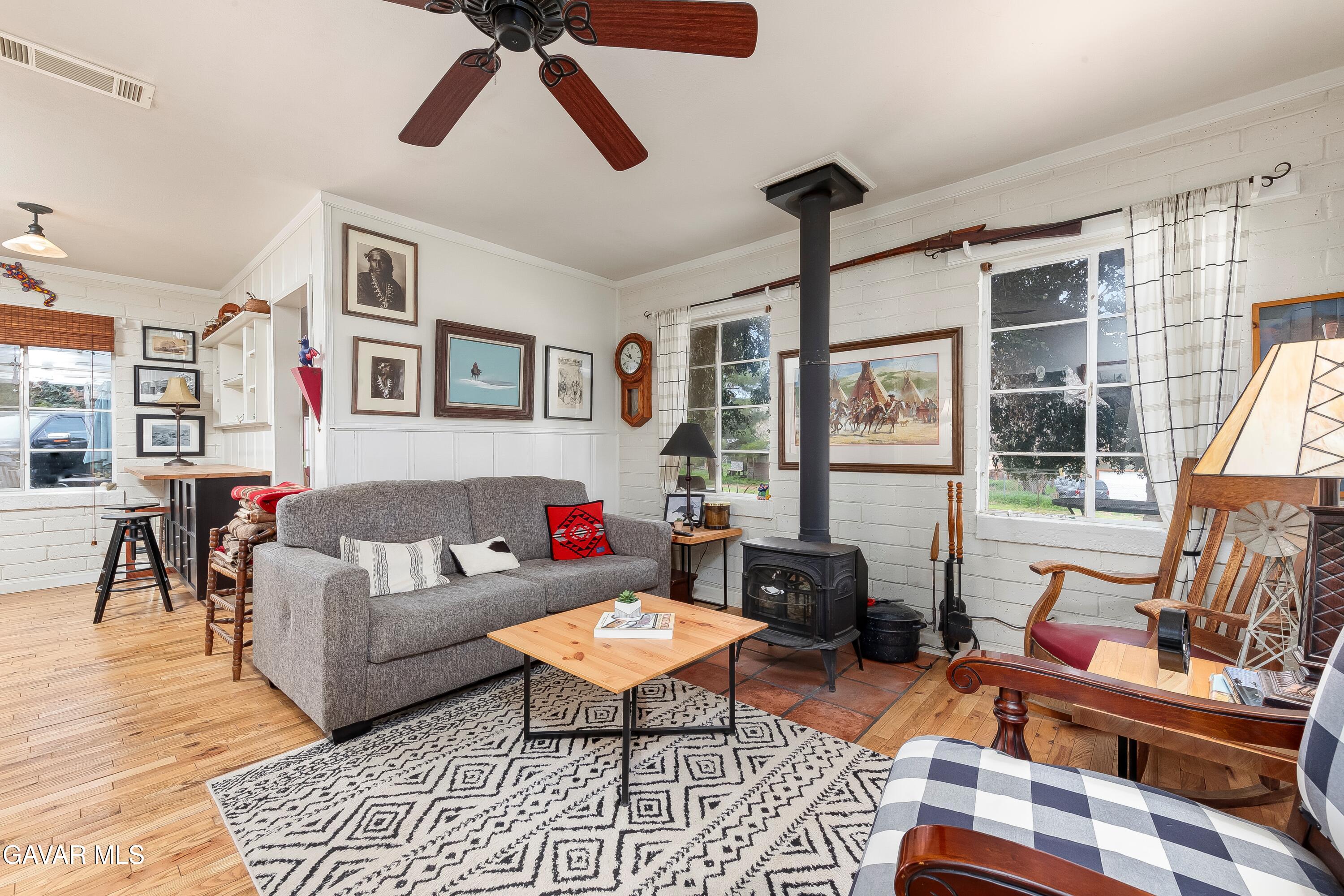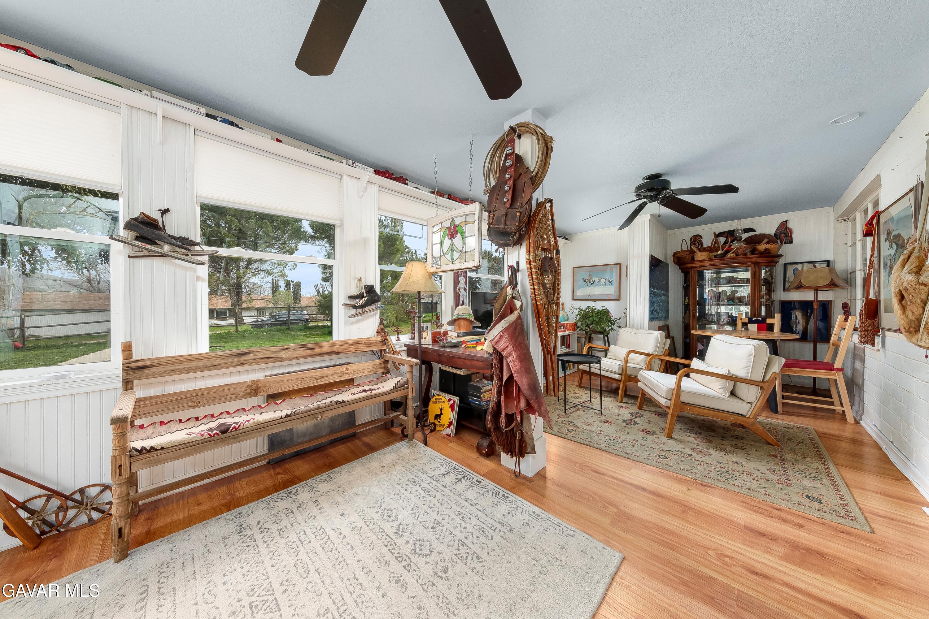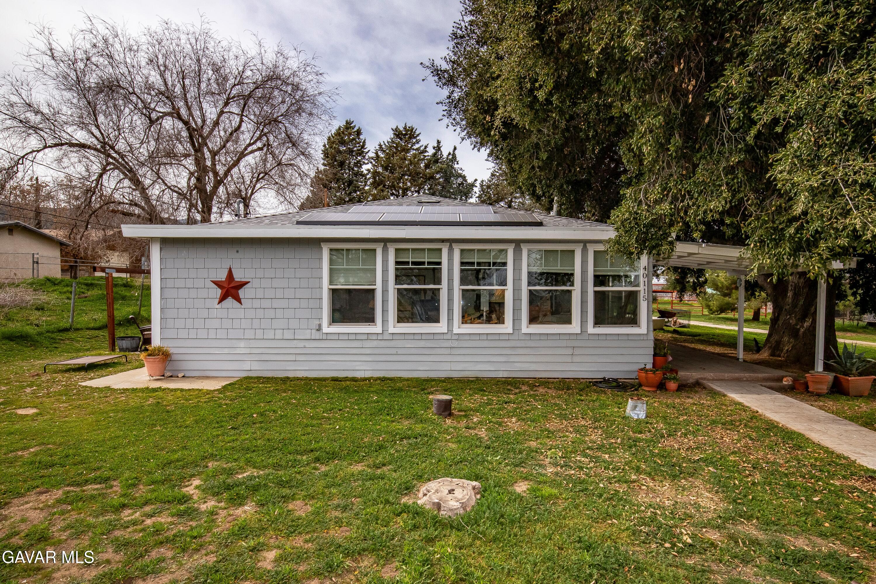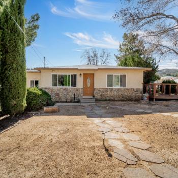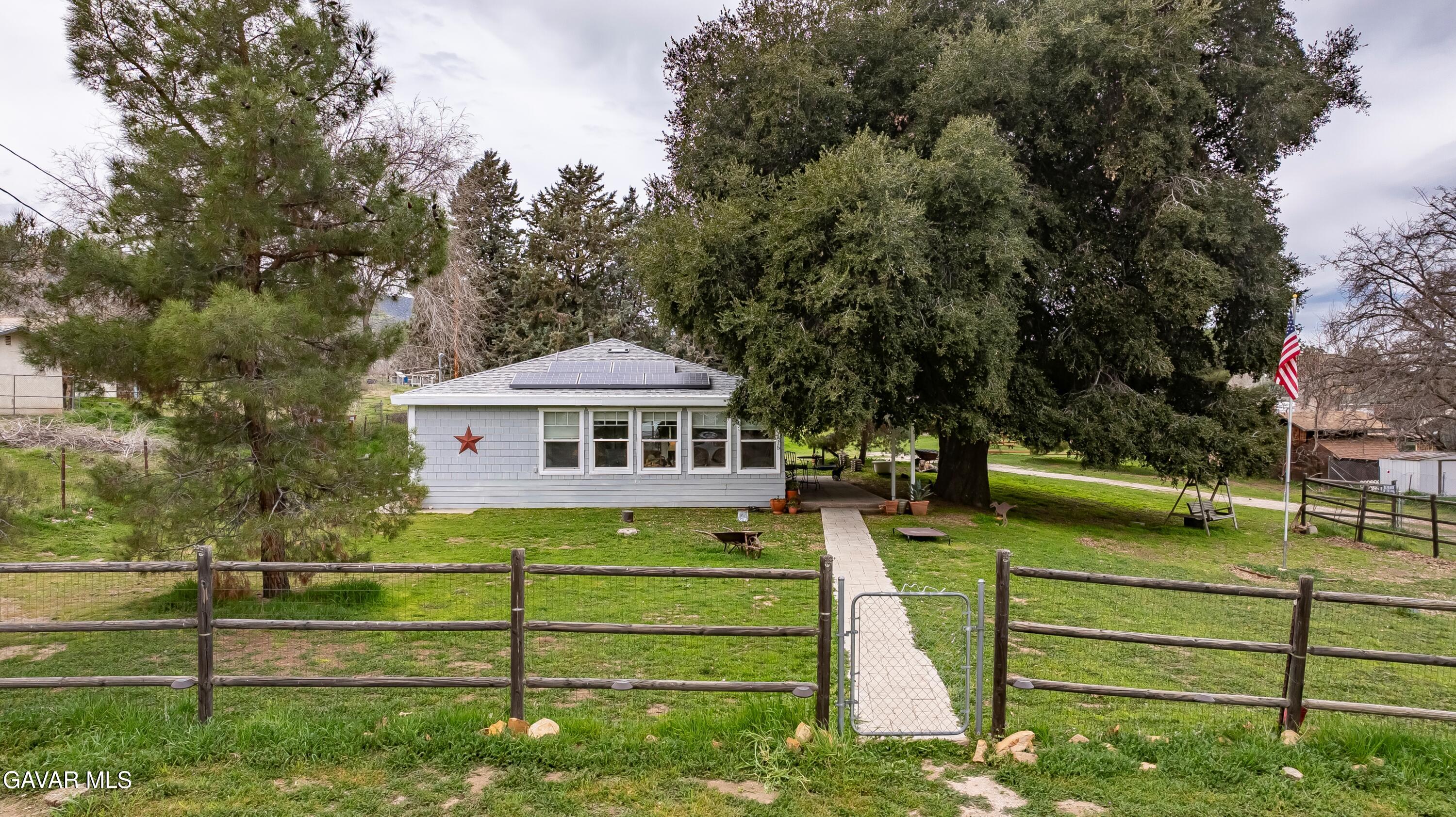 COZY UPGRADED HOME WITH LARGE WORKSHOP/BARN ON AN ACRE OF ALL USEABLE PROPERTY. This unique Leona Valley Home is fully fenced, with mature trees and it is on a paved street. In addition to the Living Room with Wainscoting and a Cozy Wood Burning Stove, there is a Sun Room with Lots of Windows that works great as a Family Room. The Kitchen has been remodeled with Lots of Cabinets, Butcher Block Countertops with Stone Tile Backsplash and Stainless Appliances. Beyond the kitchen is a Laundry Room with cabinets for your supplies. The Master Bedroom has a large Walkin Closet. The Bathroom was also very tastefully remodeled. You'll love the Real Hardwood Flooring! This home has Central Heat and Air. All appliances can stay including Refrigerator and Washer Dryer. And the Roof is New. Covered Outdoor Areas are great for Indoor/Outdoor Living. What also makes this home special is the Large Permitted Metal Barn/Workshop with full power. It can probably fit 8 cars and it features rolling entry doors and hay or equipment Awnings on each side. There is a second quaint storage building. Your horse can move right into the horse corral! And how about the outdoor shower dog washing station. And an old Well sellers never activated could be a bonus for landscape watering if you choose to get it activated. This Lovely Property is in Peaceful Leona Valley, only 30 minutes from Santa Clarita -- a hidden Gem of southern California. Don't miss this great property.