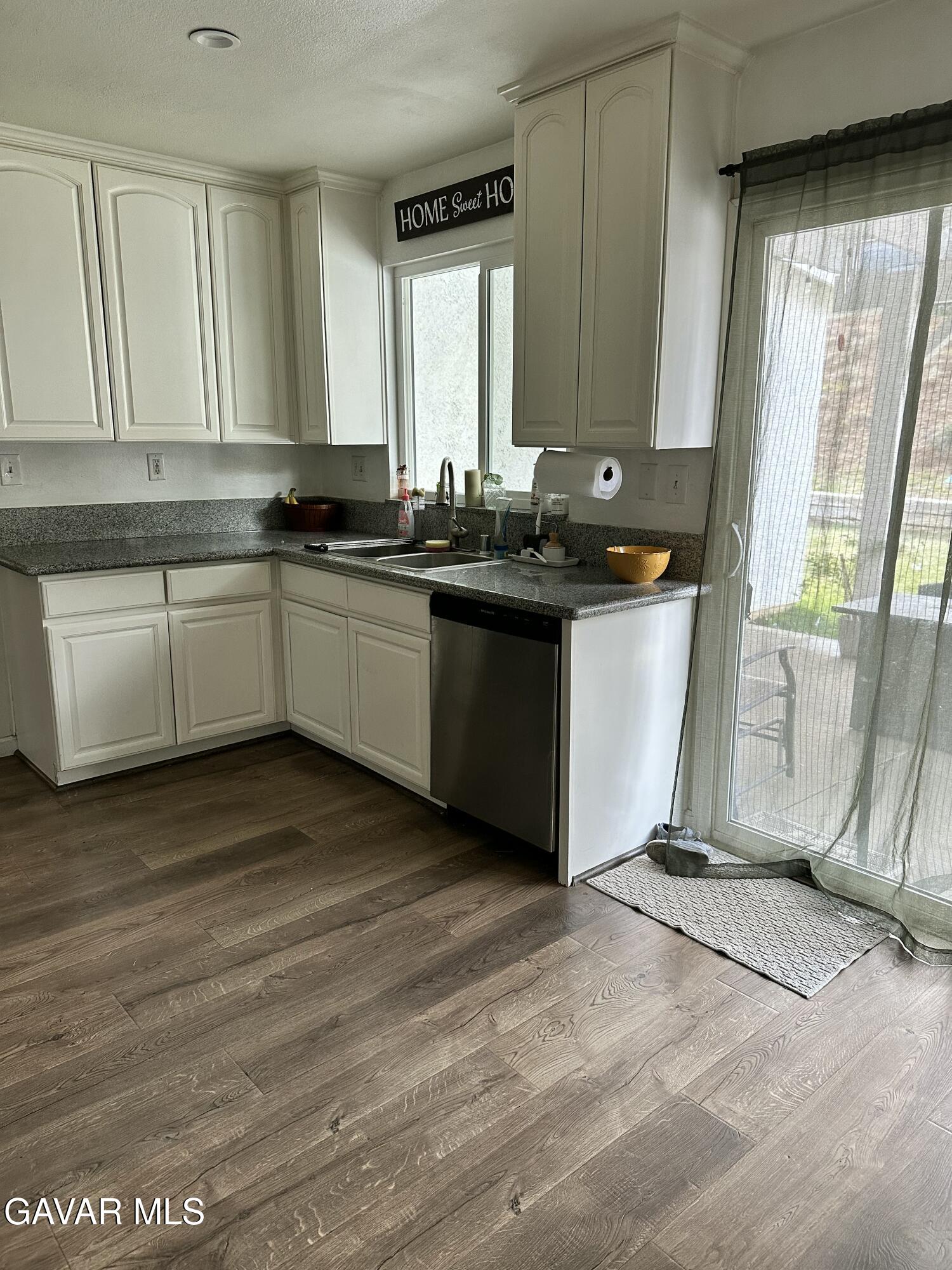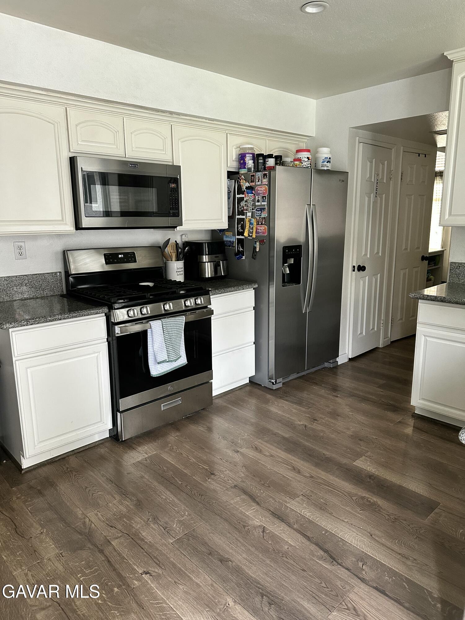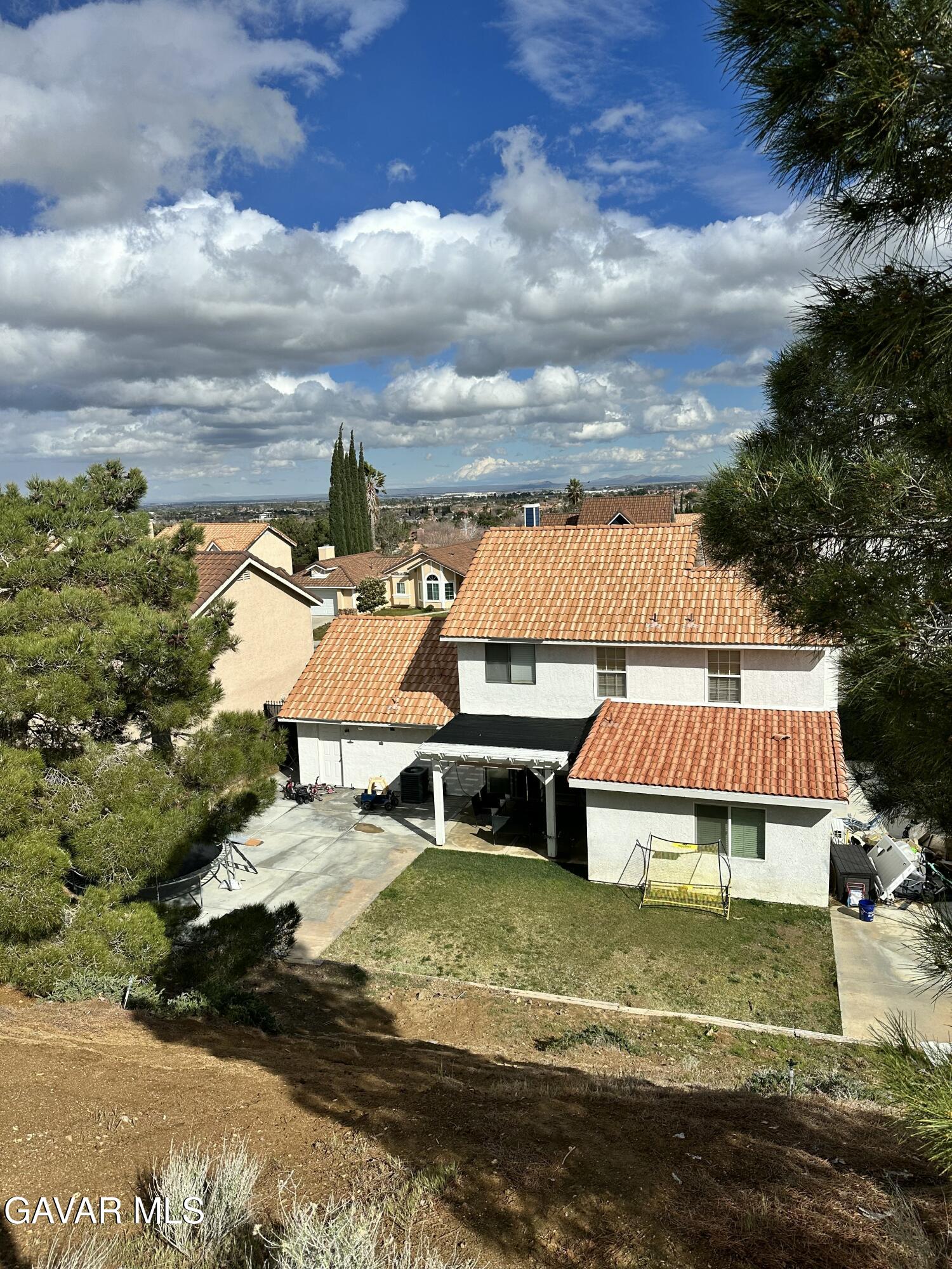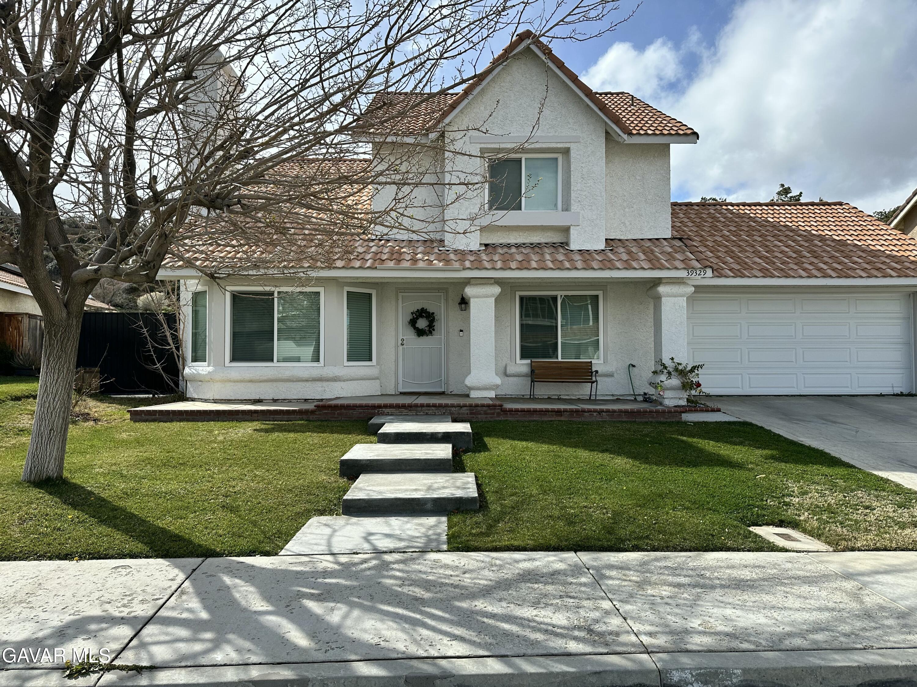 Come see this charming traditional two-story, 4 bedroom, 4 bath home in West Palmdale! Home is near schools, shopping centers and minutes from the Fwy! As you open the front door you'll notice the beautiful laminate flooring, open floor plan, vaulted ceilings, and brick fireplace. Downstairs includes the living room, kitchen, dining room, family room, guest half bath and an additional, permitted, large, carpeted, primary bedroom with full bath. As you walk up the carpeted Stairs you find 3 additional carpeted bedrooms. One being a large primary bedroom with a 3/4 bath, that includes double sinks. The kitchen updates include white cabinets, and granite counter tops. From the Kitchen there is direct access to the two car garage with washer and dryer hook-ups as well as sliding glass doors to the backyard leading to the pergola covered patio to enjoy the landscaped yard with hillside view.