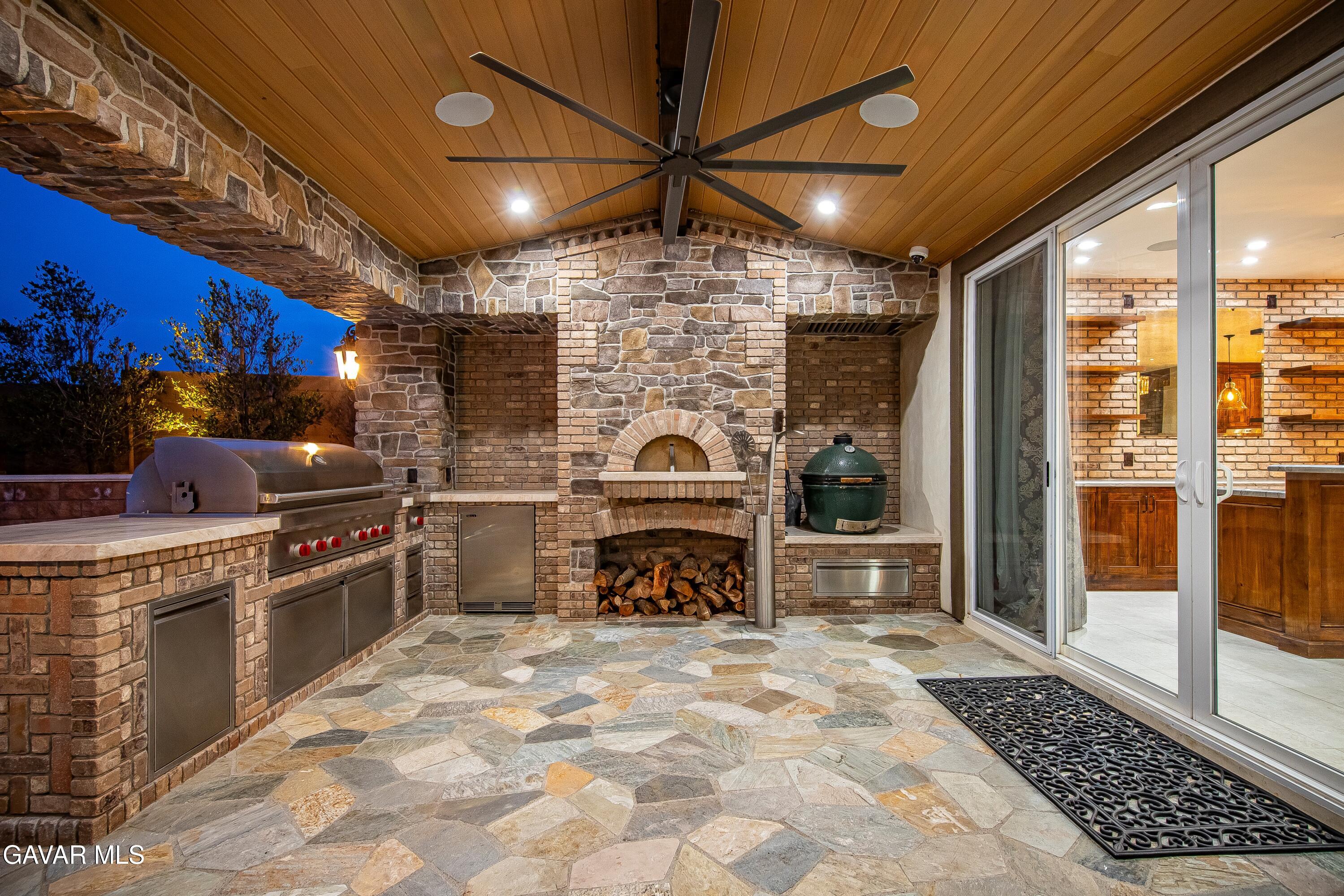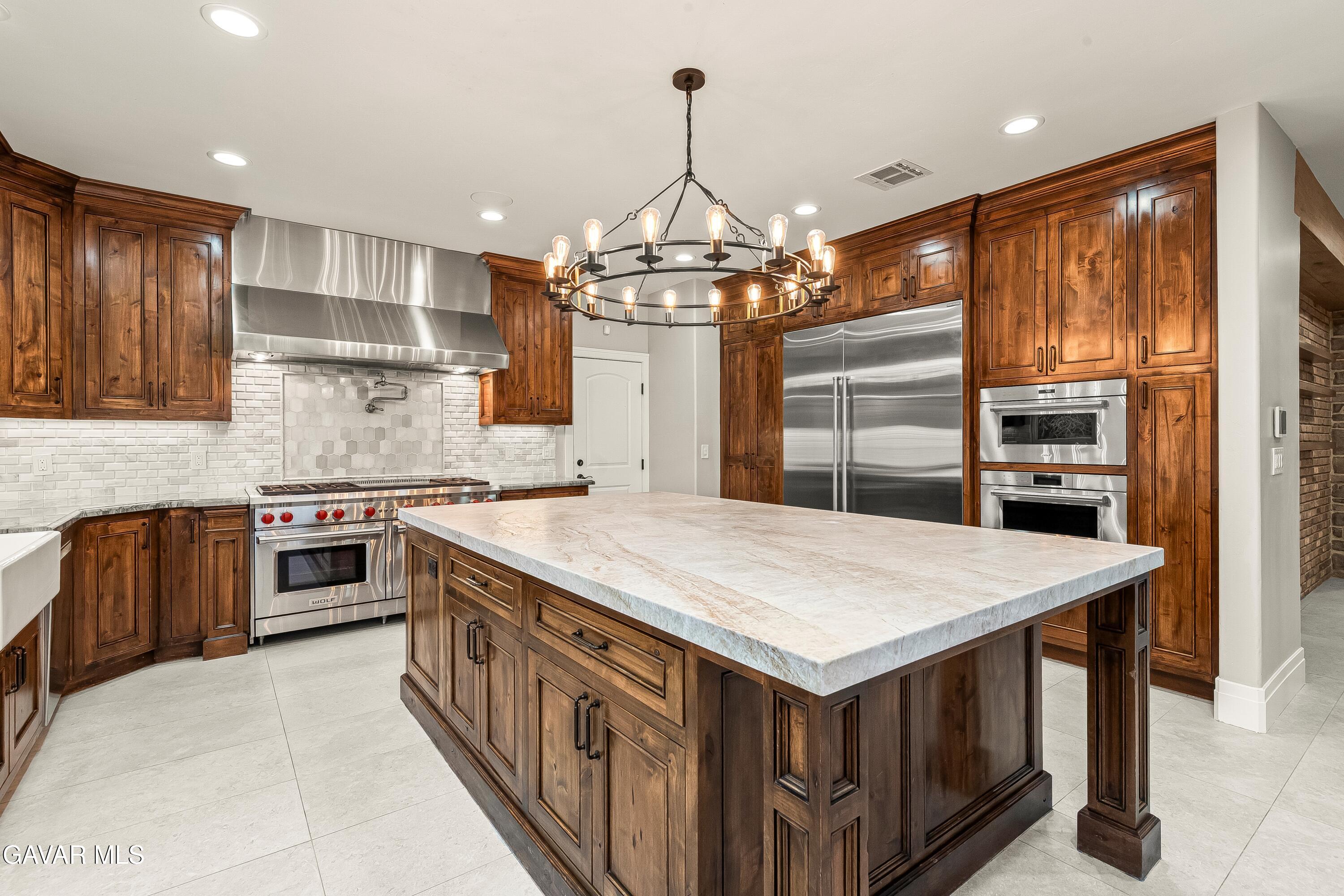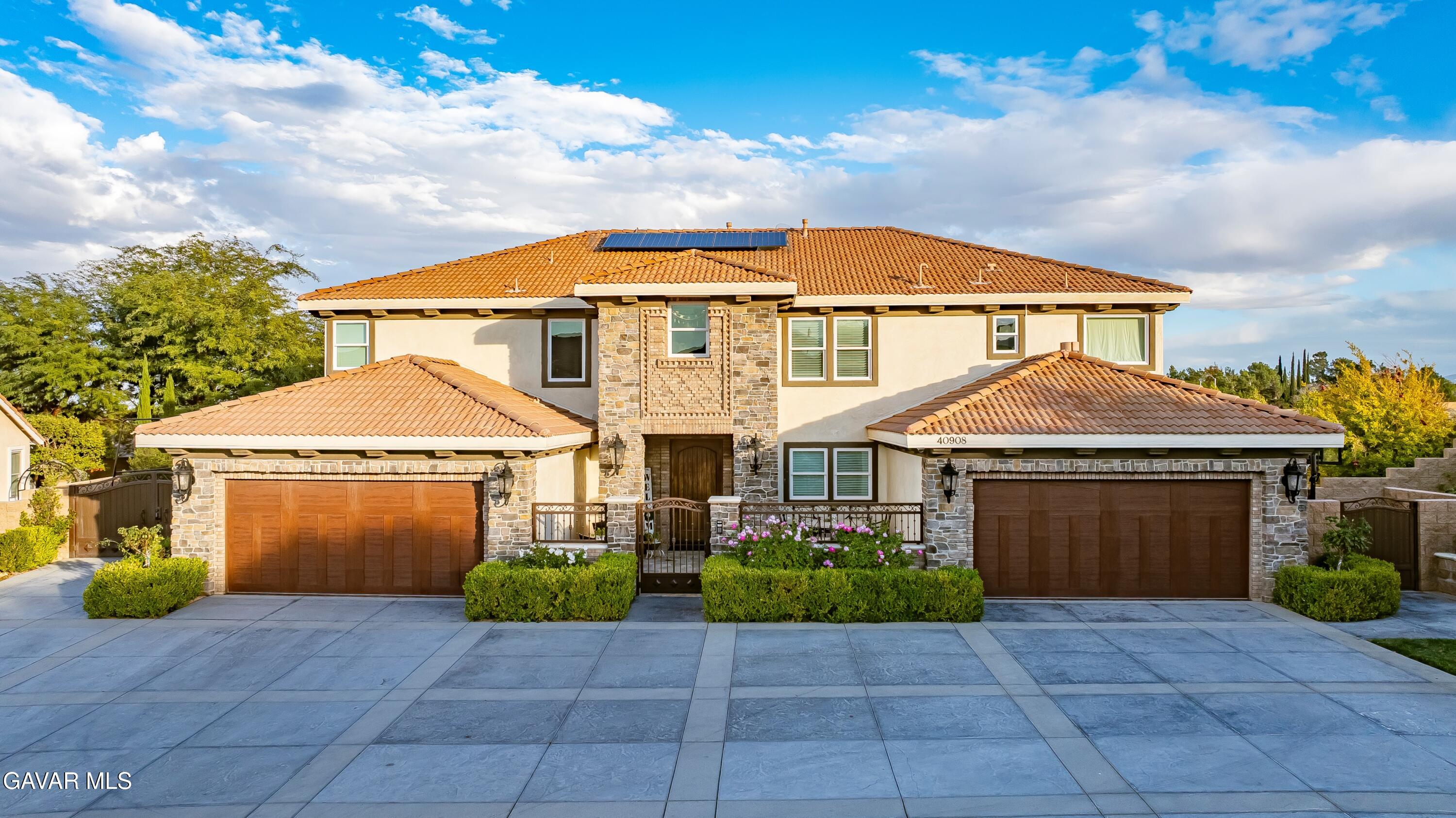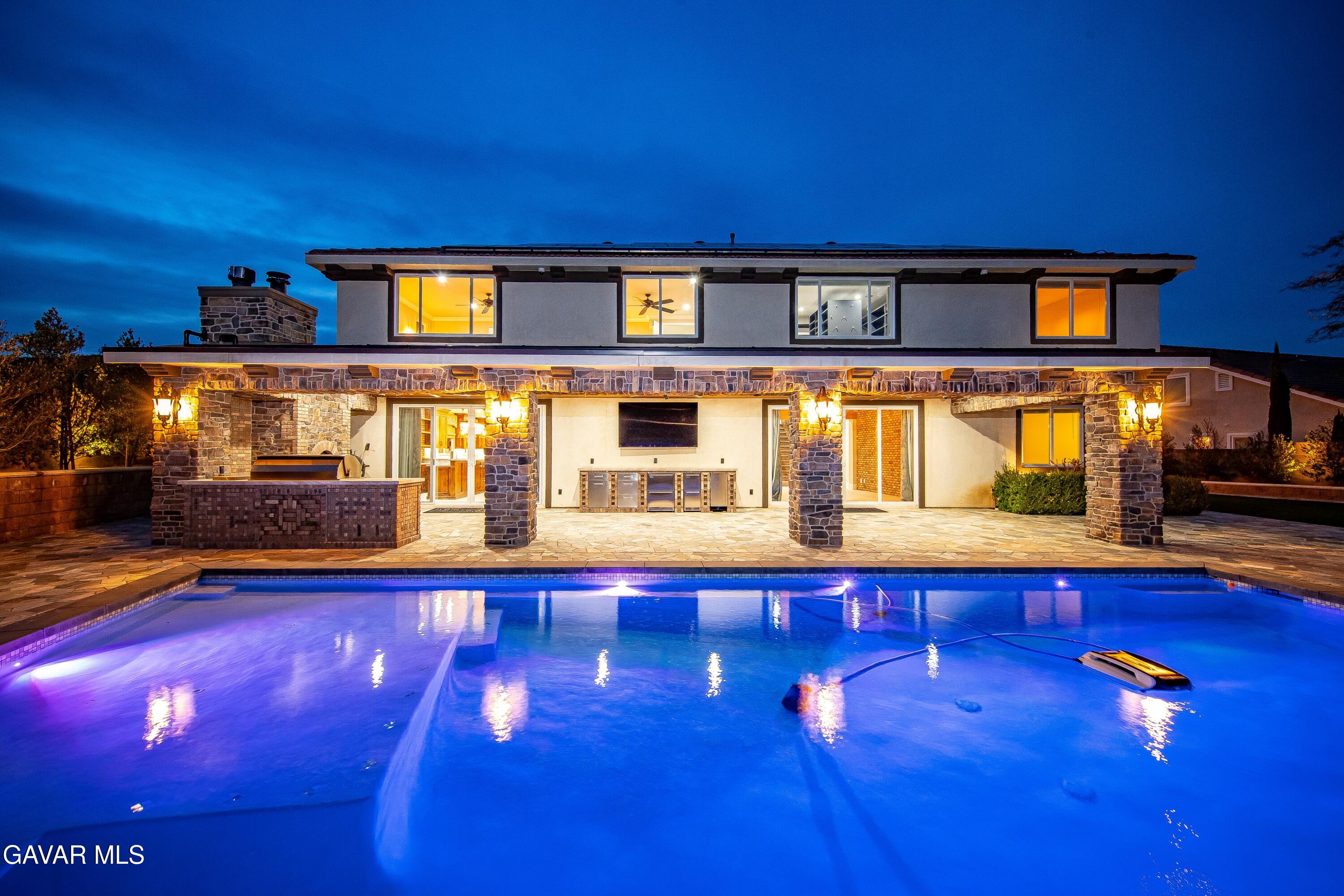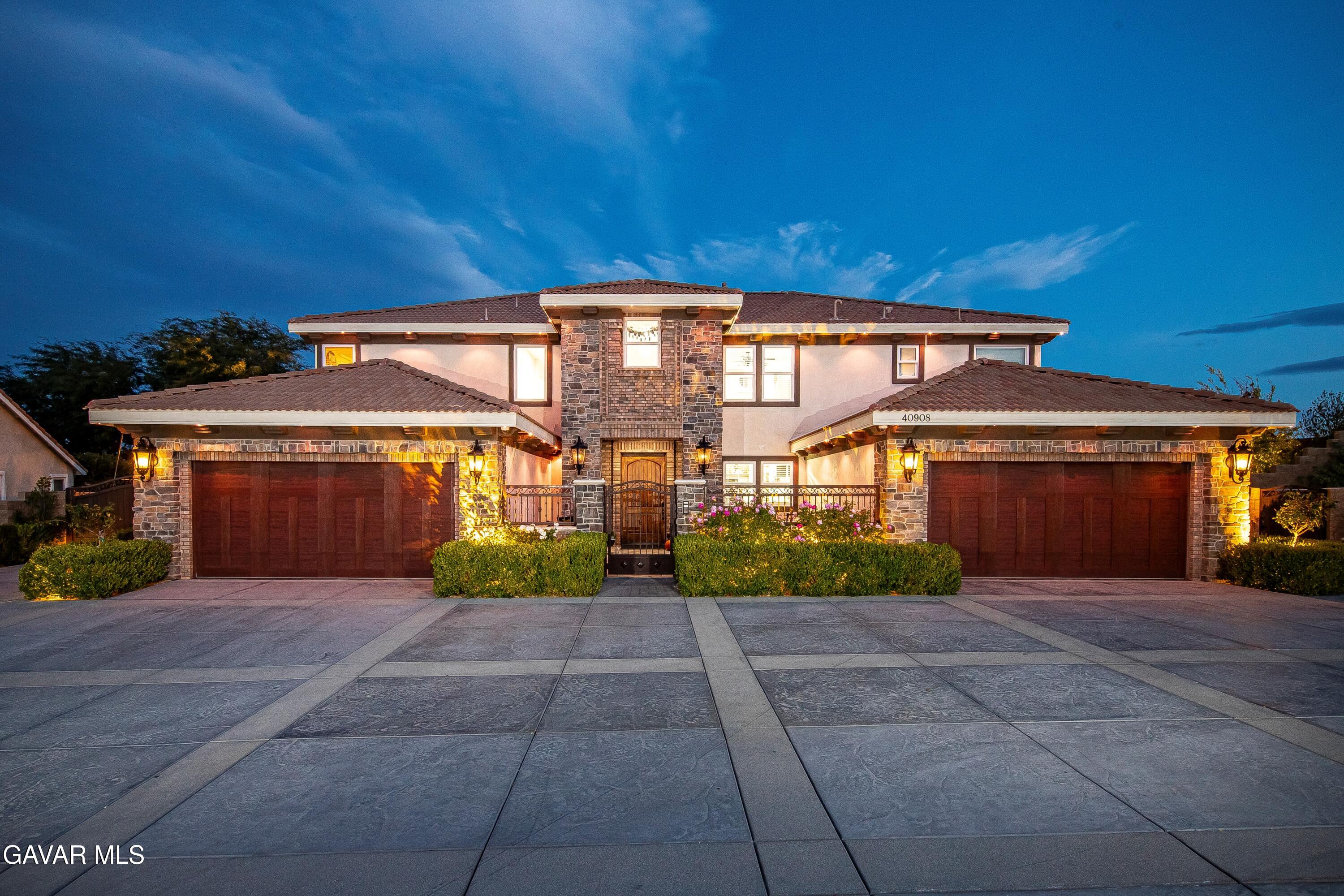 SPECTACULAR HIGHLY CUSTOMIZED HOME IN WEST PALMDALE GATED COMMUNITY Ready For Your Family! You'll love the Attention to Detail. An Expansive Parking area, Concrete with Decorative Banding accented with Rock Accents and Attractive Landscaping on 3 Sides. You enter the Home through the Gated Courtyard Entry. From the Oversized Solid Wood Door through to the back yard Outdoor Kitchen you will see that no money was spared. The Open Floorplan Concept which includes Large Living and Dining Rooms plus a Huge Entertainment and Bar Area are great all Impressive. And the Kitchen! Wow. It will knock your socks off. Rich Knotty Alder Cabinets with Thick Stone Countertops. Wolf Appliances include 60 Inch Range with Double Ovens and Griddle. There are 2 Dishwashers, a Microwave plus separate Convection Oven. The cook in the house will be amazed at the Huge Butler's Pantry with Lots of Work Area, a Utility Sink, Room for a second Refrigerator and Freezer and lots of Pantry Shelving. And the Doors are built to Integrate with the Kitchen Cabinets. Downstairs there are 2 Bedrooms and a Bathroom with access to outside (Pool Bath). Upstairs is a Loft TV/Game Room great for family gatherings. You will love this Huge Master Bedroom, the 3 Walkin Closets are finished with Custom Builtins. All Bathrooms have been Upgraded. Did I mention the Laundry Room. It is already set up with 2 Washing Machines and 2 Dryers neatly stacked in the Builtin Cabinets. There is a Utility Sink and Lots of Work Space and of course, all Cabinets are Knotty Alder. Outside if made for entertaining: Huge Covered Patio with Recessed Lighting, Ceiling Fans, Large Gas BBQ plus Green Egg BBQ, Pizza Oven, Refrigerator, Chilling Drawers and Ice Maker. The Inground Pool with Raised Spa is the focal point of this Lovely Yard. All Flatwork under the Patio, around the Pool and more is Rich Natural Flagstone. This outdoor space perfectly compliments the gorgeous interior for GREAT INDOOR/OUTDOOR LIVING! Don't miss it!
